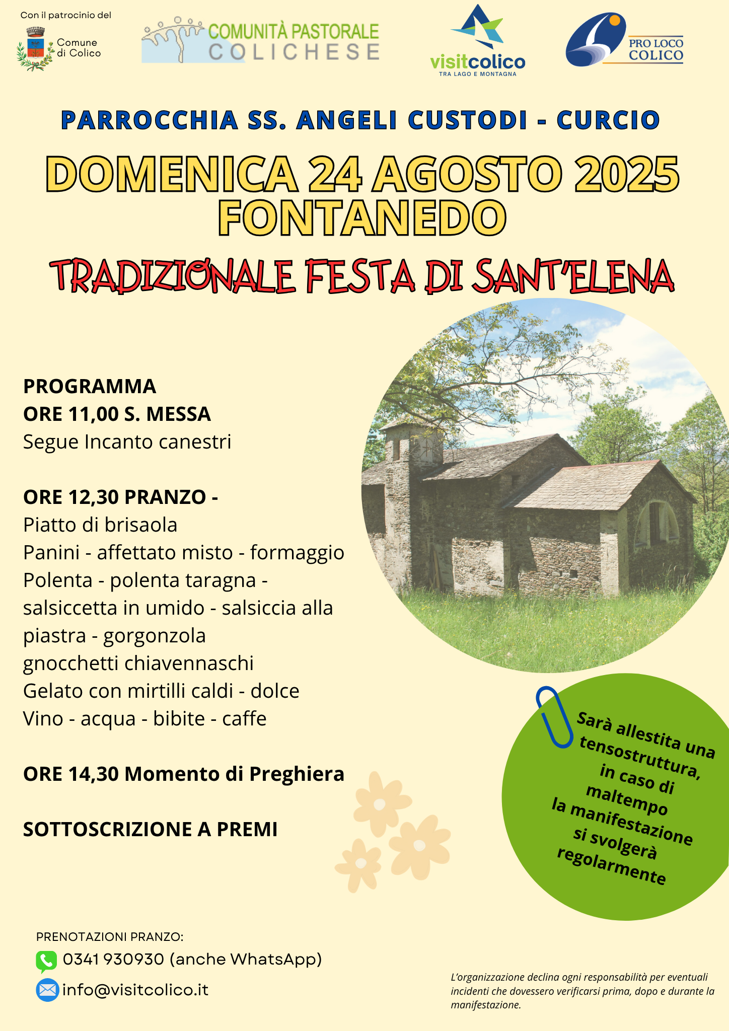 Domenica 24 Agosto si terrà a Colico, presso la Parrocchia dei SS. Angeli Custodi di Curcio, la tradizionale Festa di Sant’Elena.