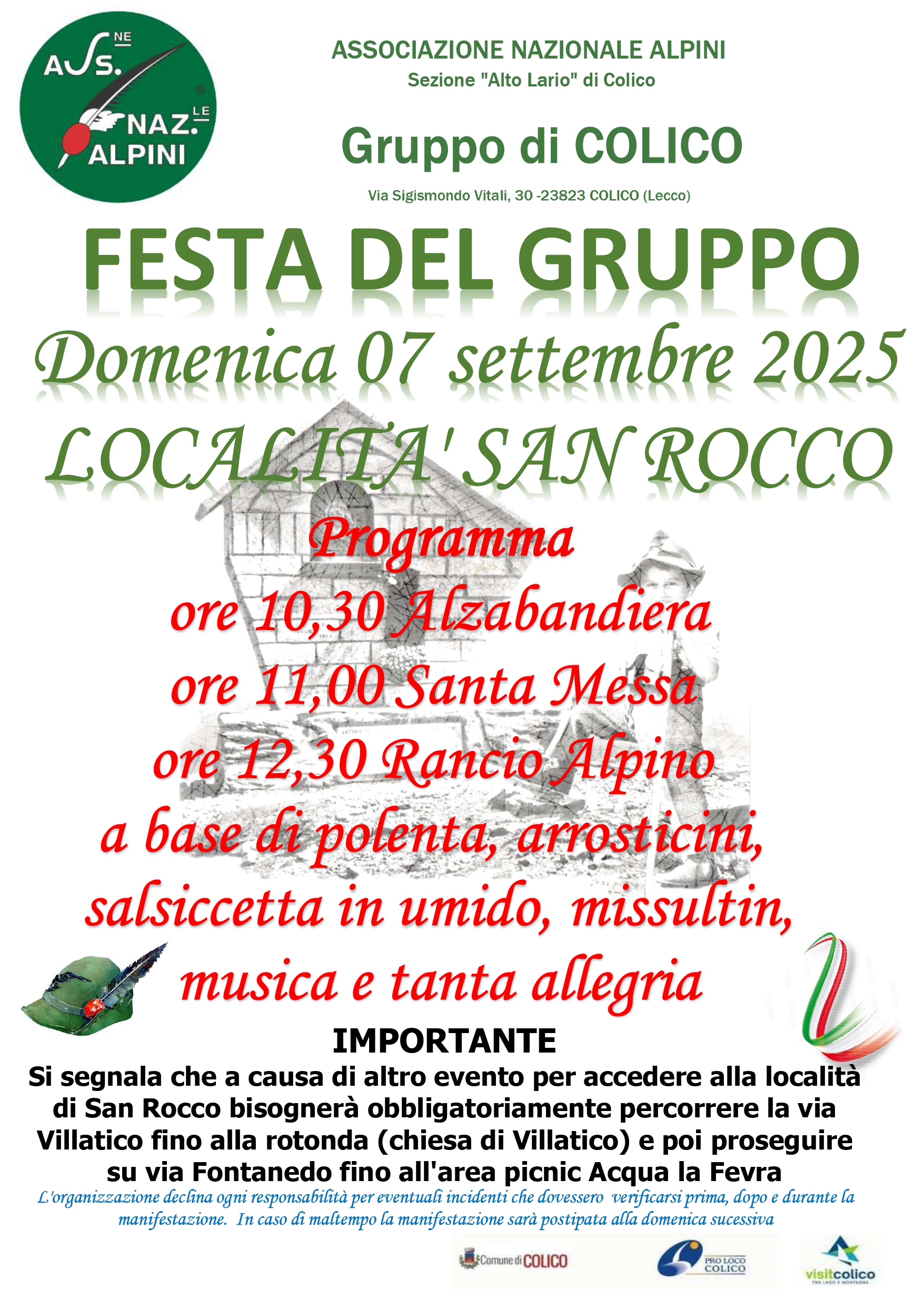 Domenica 7 Settembre, in Località San Rocco a Colico, torna la Festa Alpina, organizzata dal Gruppo Alpini di Colico.