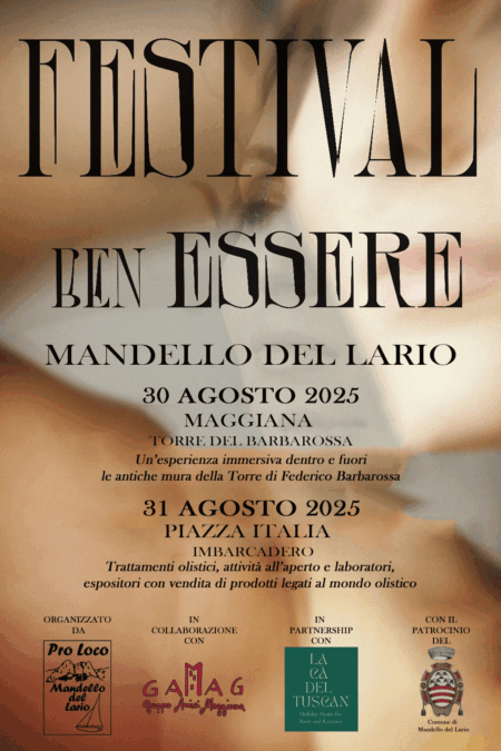 Prenditi cura di te alla seconfa Edizione del Festival del Benessere: una giornata speciale all’insegna del relax, della salute e dell’armonia, organizzata dalla Pro Loco di Mandello, con il patrocinio del Comune di Mandello del Lario, in collaborazione con G.A.Mag. e la partnership de “La Cà del Tuscan”.
