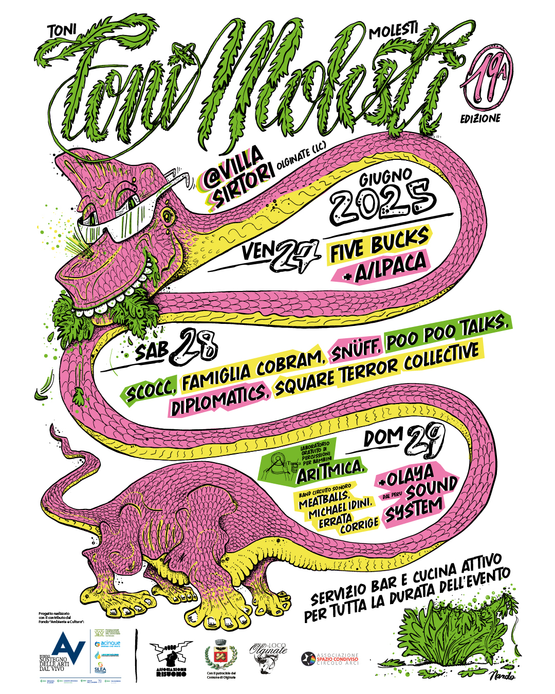Da Venerdì 27 a Domenica 29 Giugno il parco di Villa Sirtori di Olginate ospiterà la diciannovesima edizione del festival musicale Toni Molesti, proposto dall’Associazione di promozione sociale Risuono. Il festival è sempre a ingresso gratuito.