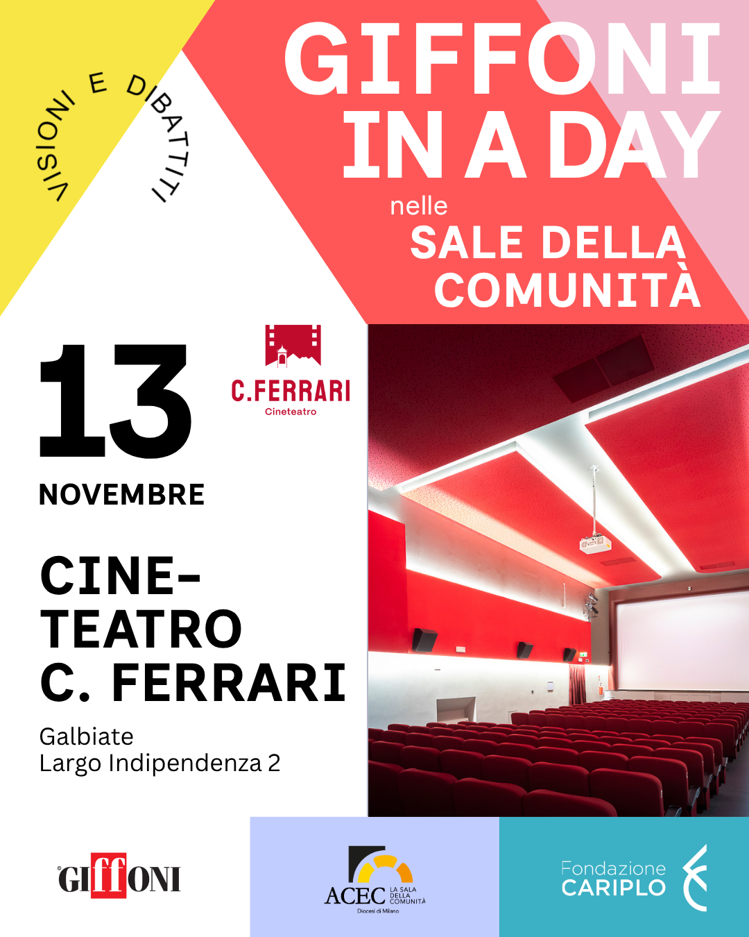 Arriva al CineTeatro Cardinal Ferrari Giffoni in a Day, evento che si terrà Giovedì 13 Novembre. Il cinema non solo come intrattenimento, ma come linguaggio vivo, accessibile, educativo: è questa la visione dell’iniziativa dedicata ai più giovani e alla potenza educativa delle immagini promossa da ACEC Diocesi di Milano in collaborazione con Giffoni Experience e con il sostegno di Fondazione Cariplo.
