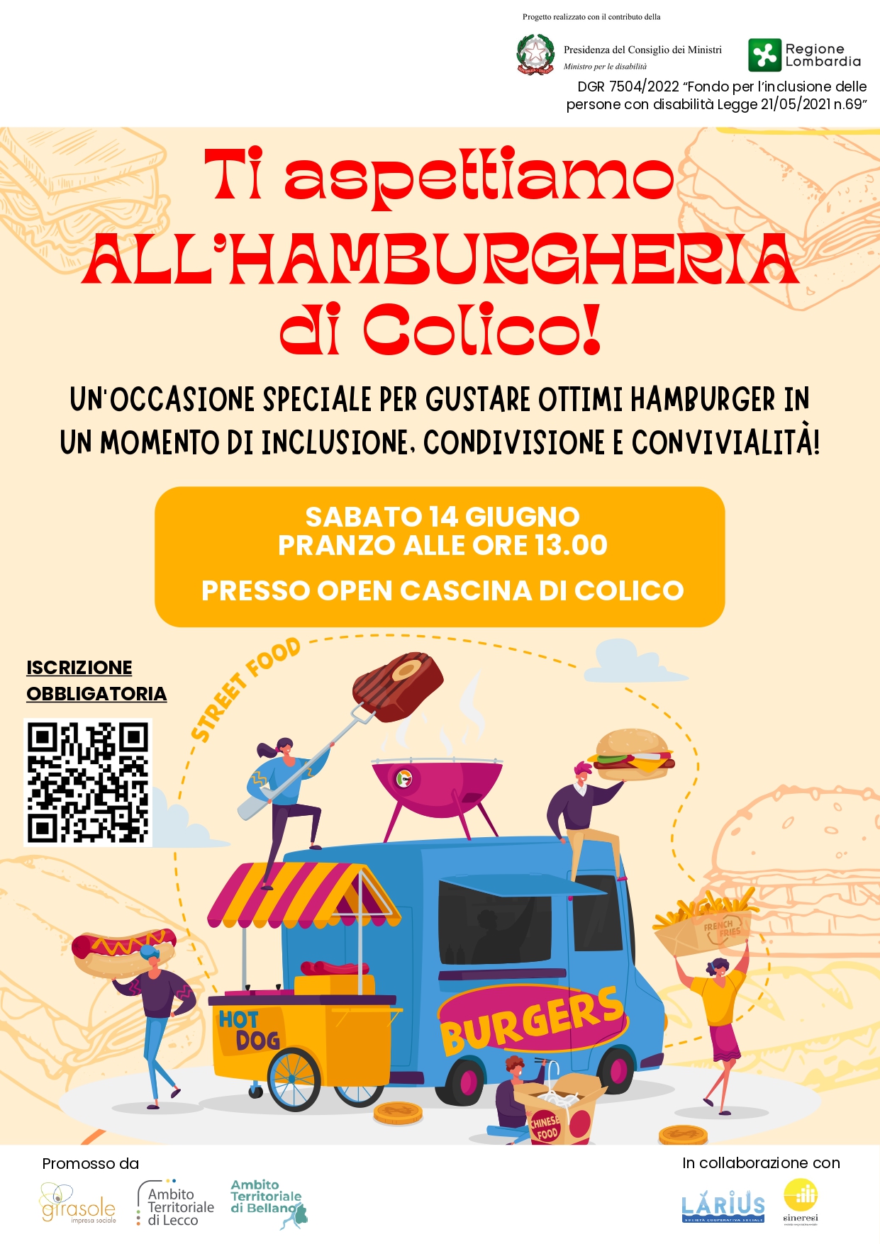 Sabato 14 giugno, alle 13:00, presso Open Cascina di Colico, si terrà l’evento “Hamburgeria di Colico”, un appuntamento dedicato all’inclusione sociale, alla condivisione e al piacere dello stare insieme.