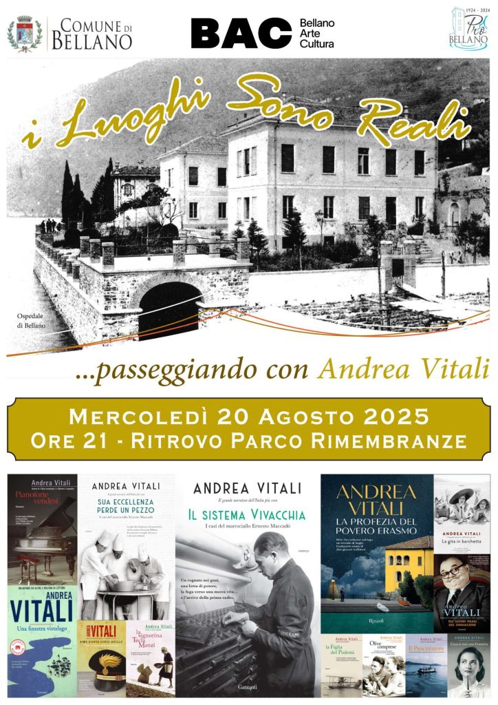 Mercoledì 20 Agosto alle 21.00 lo scrittore Andrea Vitali accompagnerà i partecipanti in un tour attraverso Parco delle Rimembranze e per le vie del Borgo a Bellano. L’evento si chiama I luoghi sono reali ed è a ingresso gratuito.