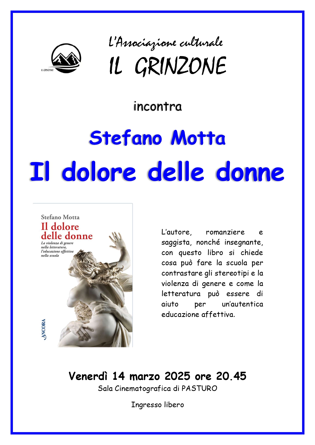 L’Associazione Il Grinzone propone un incontro con Stefano Motta per la presentazione del suo libro “Il dolore delle donne“.