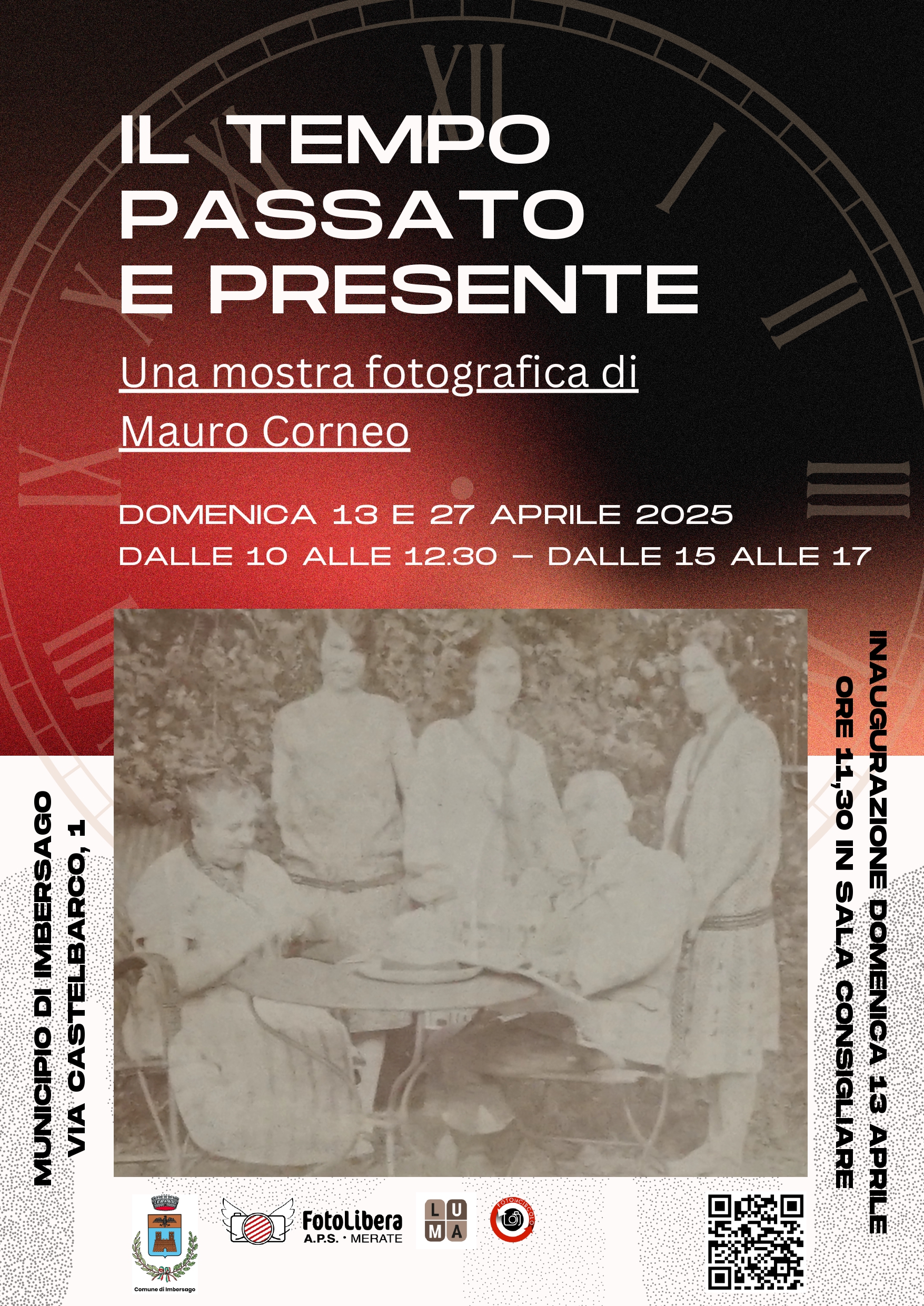 Domenica 13 e 27 Aprile il Municipio di Imbersago ospiterà la mostra fotografica “IL tempo passato e presente” a cura di Mauro Corneo. La mostra sarà inaugurata il 13 Aprile alle 11.30 e sarà visitabile nei giorni indicati dalle 10.00 alle 12.30 e dalle 15.00 alle 17.00.