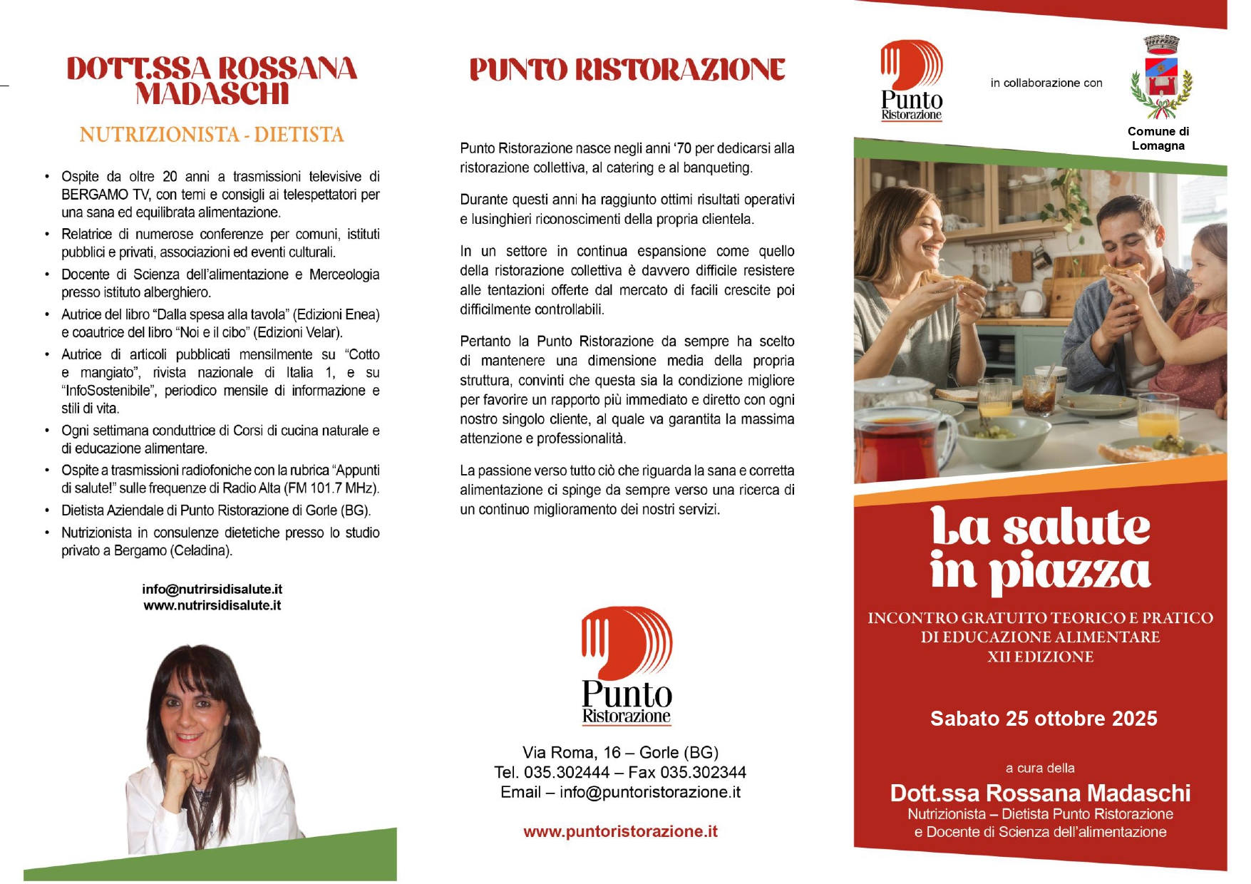 L’incontro è a cura della Dott.ssa Rossana Madaschi, Nutrizionista e Dietista Punto Ristorazione e Docente di Scienza dell’alimentazione.