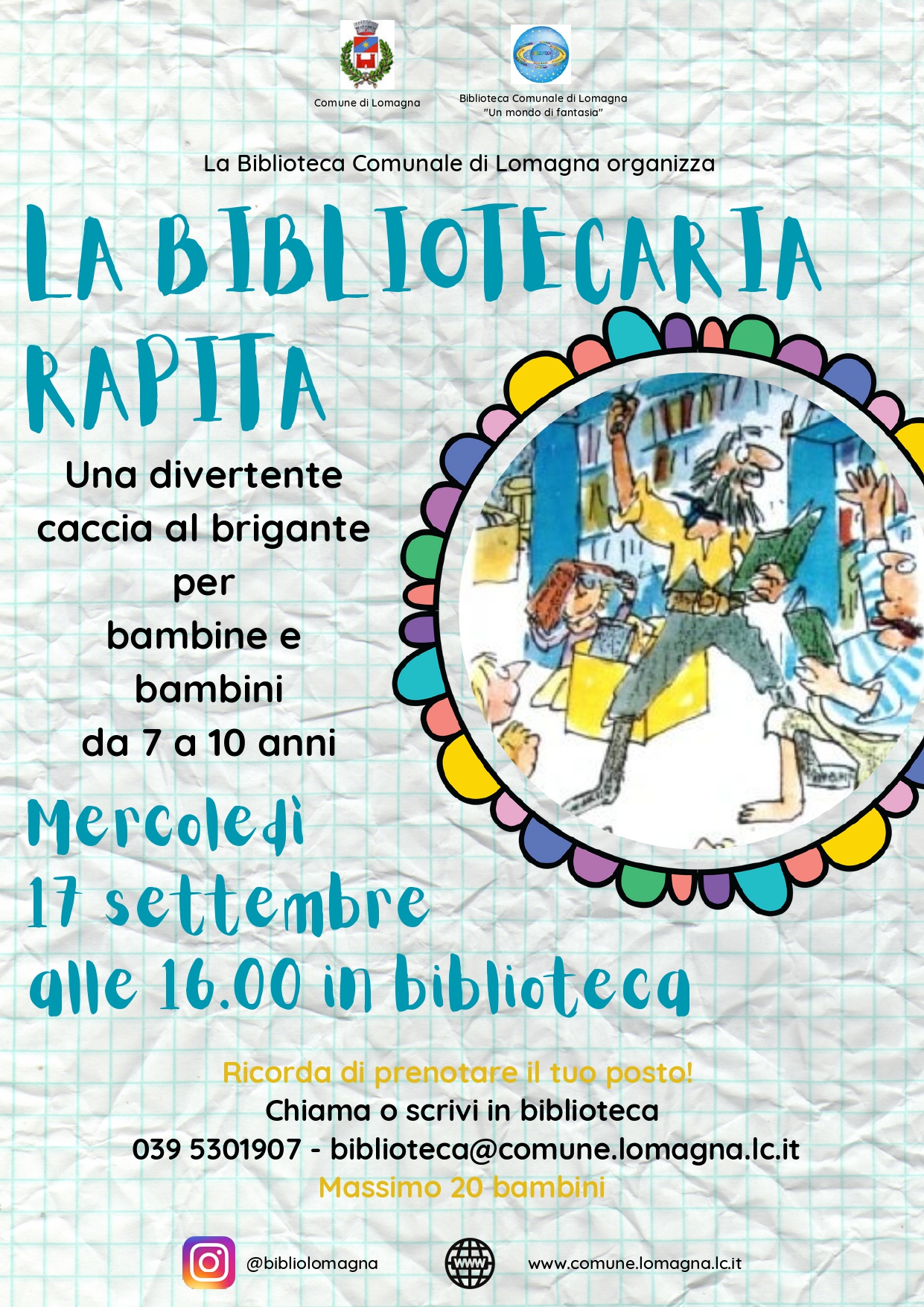 “La bibliotecaria rapita”, laboratorio per bambini, a cura della Biblioteca Comunale (prenotazione gradita via email)