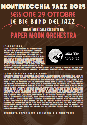 L’obiettivo è quello di far avvicinare al jazz anche i non esperti, non solo i jazzofili. Per cui le performance dei musicisti della Paper Moon Orchestra – venti elementi guidata da Antonello Monni, artista noto a livello nazionale e internazionale – saranno accompagnate da commenti e spiegazioni, supportati da audiovisivi, al fine di facilitare una miglior comprensione e collocazione storico-musicale dei brani eseguiti.