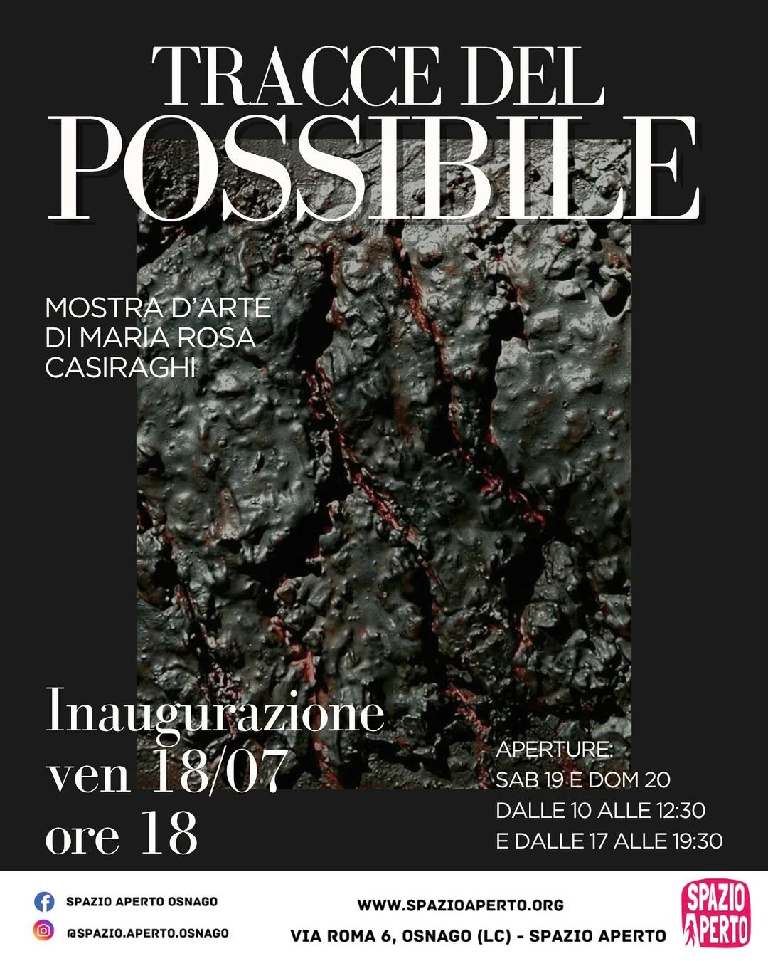 Venerdì 18 Luglio alle 18.00 verrà inaugurata presso Spazio Aperto a Osnago la mostra d’arte “Tracce del possibile” di Maria Rosa Casiraghi. Sarà poi possibile visitare la mostra Sabato 19 e Domenica 20 dalle 10:00 alle 12:30 e dalle 17:00 alle 19:30.