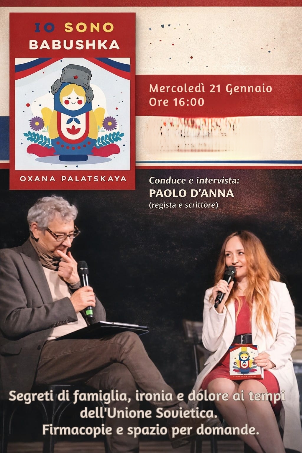 L’università della terza età della Valsassina ospita a Introbio, in località Sceregalli, presso la sede del soccorso centro Valsassina, l’incontro con Oxana Palatskaya, autrice del libro Io sono Babushka. L’evento, condotto dal giornalista Paolo D’Anna, è in programma per Mercoledì 21 Gennaio alle 16.00 ed è a ingresso gratuito.
