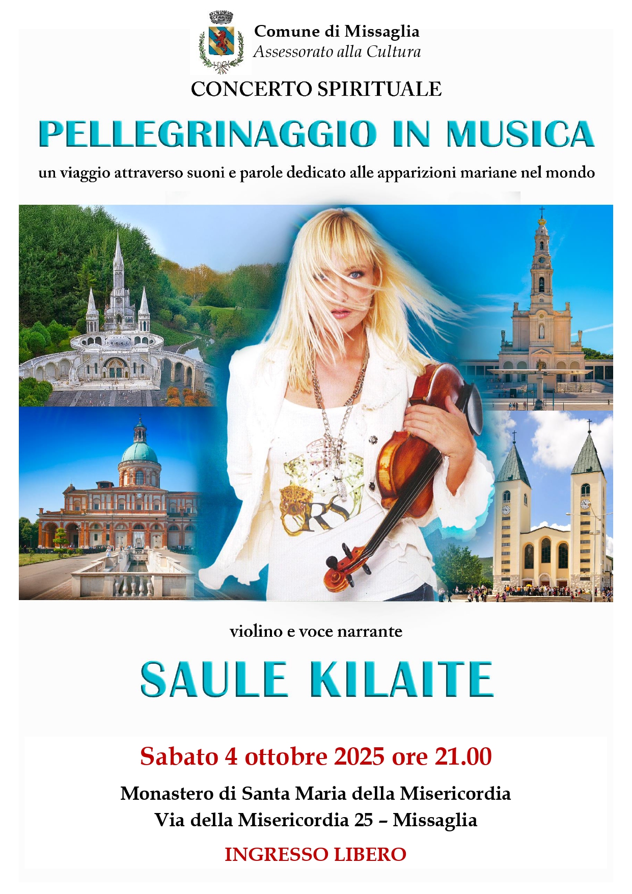 Sabato 4 Ottobre, alle 21.00, presso il Monastero della Misericordia di Missaglia, nell’ambito dell’evento dal titolo Pellegrinaggio in Musica, si esibirà la violinista Saule Kilaite. Il concerto sarà un viaggio attraverso suoni e parole dedicato alle apparizioni mariane nel mondo.