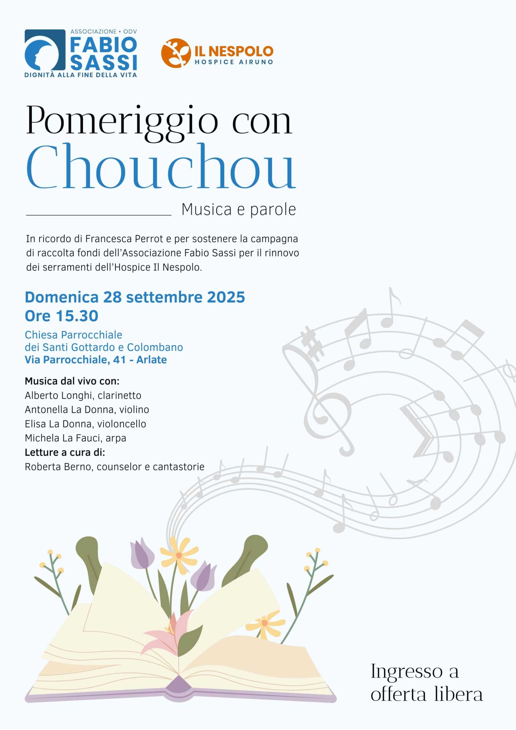 “Pomeriggio con Chouchou” non è solo un concerto, ma un gesto d’amore: il ricordo di Francesca che si trasforma in sostegno concreto per chi oggi attraversa gli ultimi tratti della vita, unendo arte, solidarietà e comunità sotto la stessa luce.