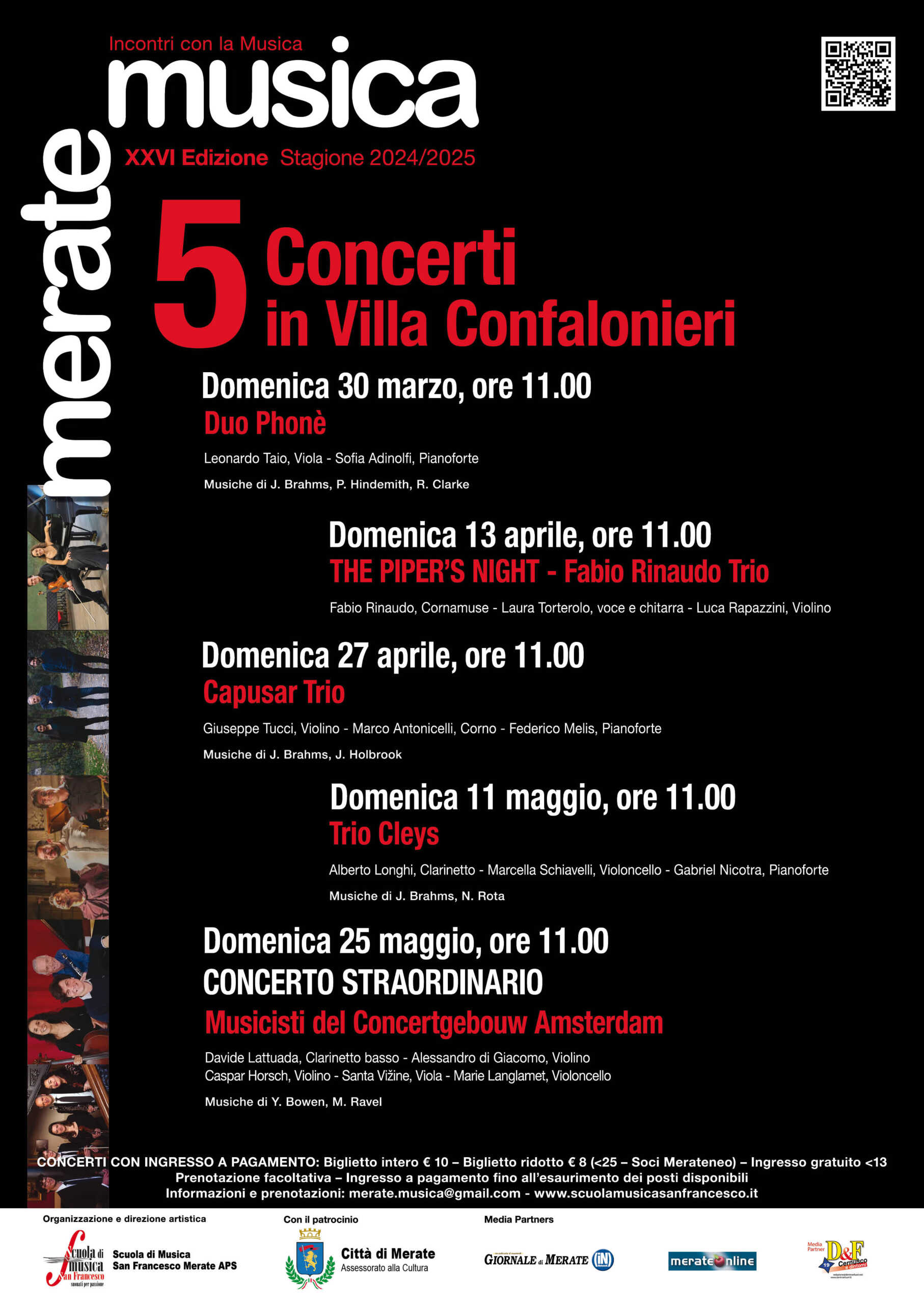 Domenica 30 Marzo alle ore 11.00 la Rassegna Merate Musica tornerà in Villa Confalonieri (Via Garibaldi 17 – Merate), con il primo di una serie di 5 concerti dedicati al grande repertorio cameristico.