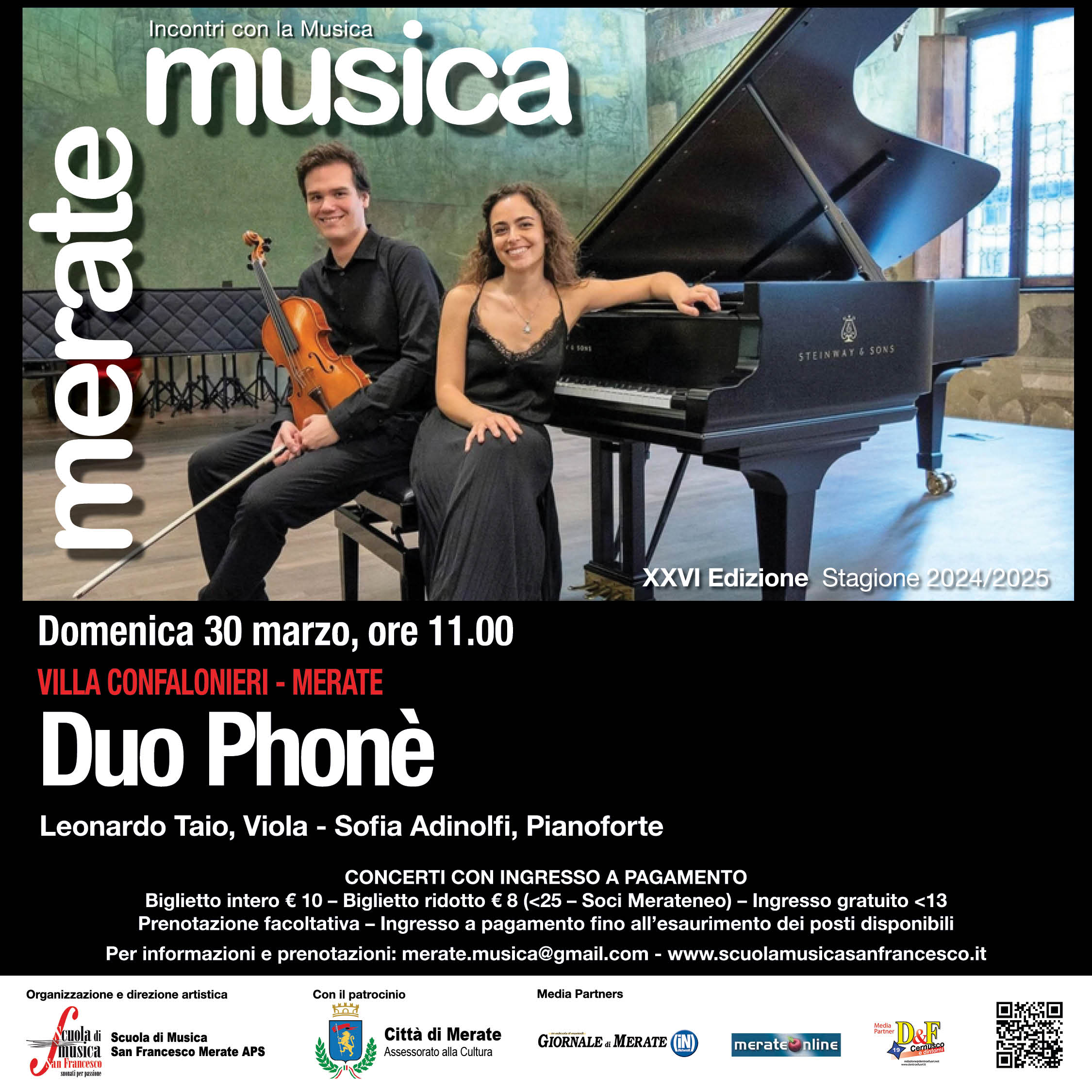 Due giovani ed eccellenti musicisti, ovvero Leonardo Taio e Sofia Adinolfi, proporranno l’ascolto di un programma meraviglioso, che esalta le inconfondibili qualità timbriche e virtuosistiche del duo Viola e Pianoforte, così interessante, particolare e amato dai grandi compositori, da Schumann a Hindemith, da Brahms a Shostakovich.