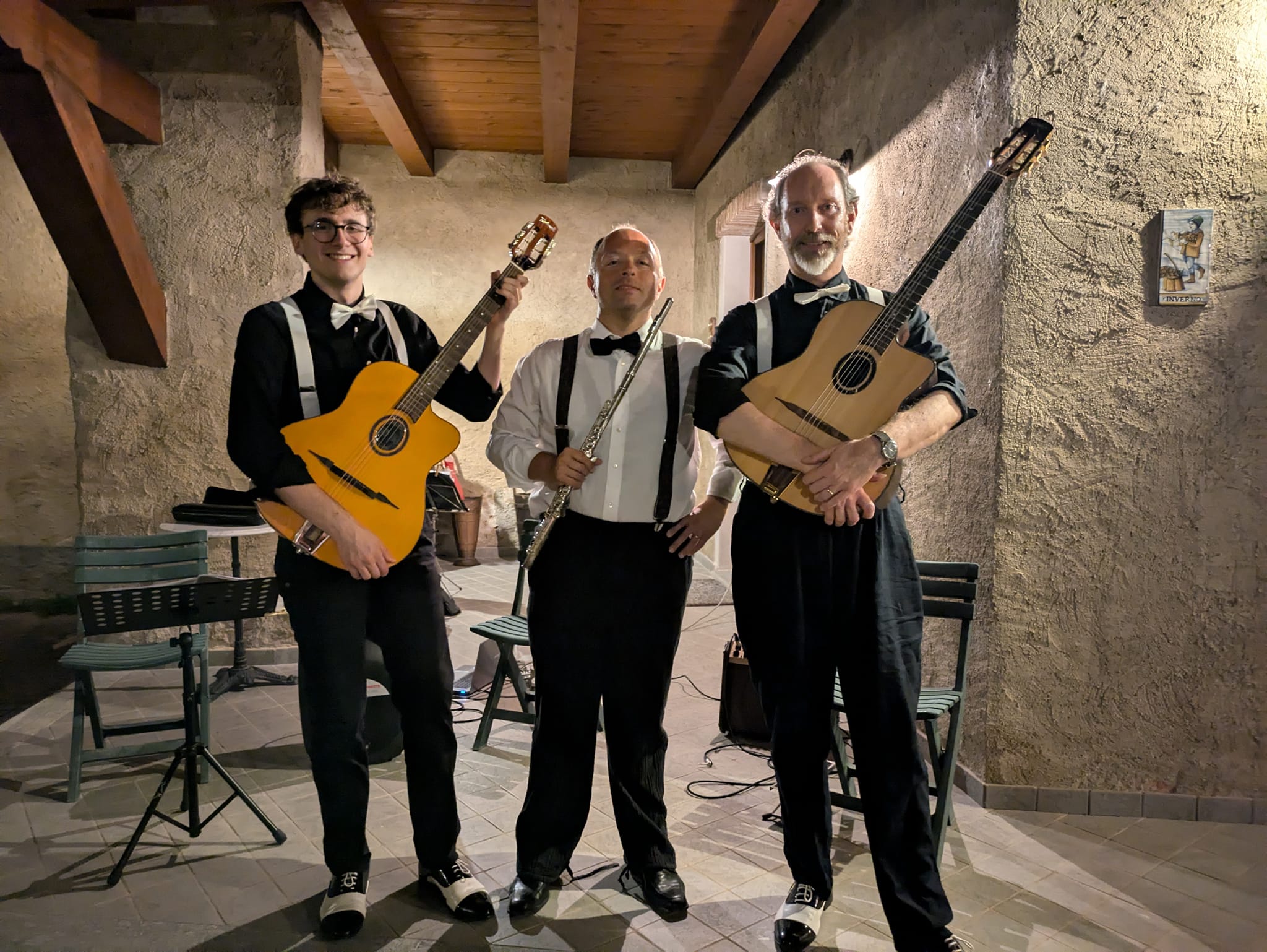 Domenica 19 Ottobre, alle 15.30, presso Villa Bertarelli a Galbiate, si terrà il concerto Django e dintorni del Trio Menardi, gruppo composto da Michele Menardi al flauto, Federico Briasco alla chitarra e Giulio Granero sempre alla chitarra. Durante il concerto verranno eseguite le seguenti canzoni: