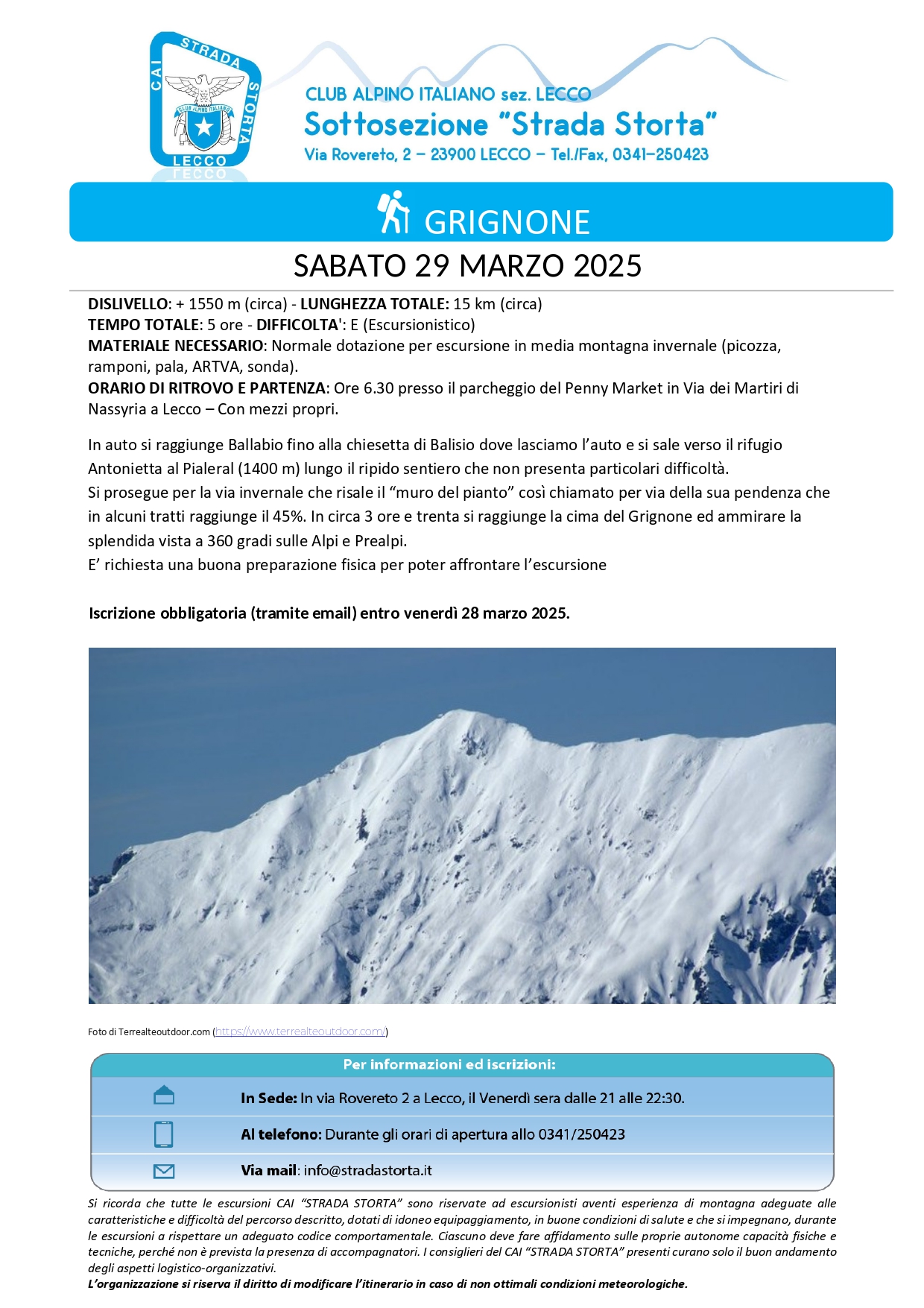 Viene proposta per Sabato 29 Marzo la salita al Monte Grignone.