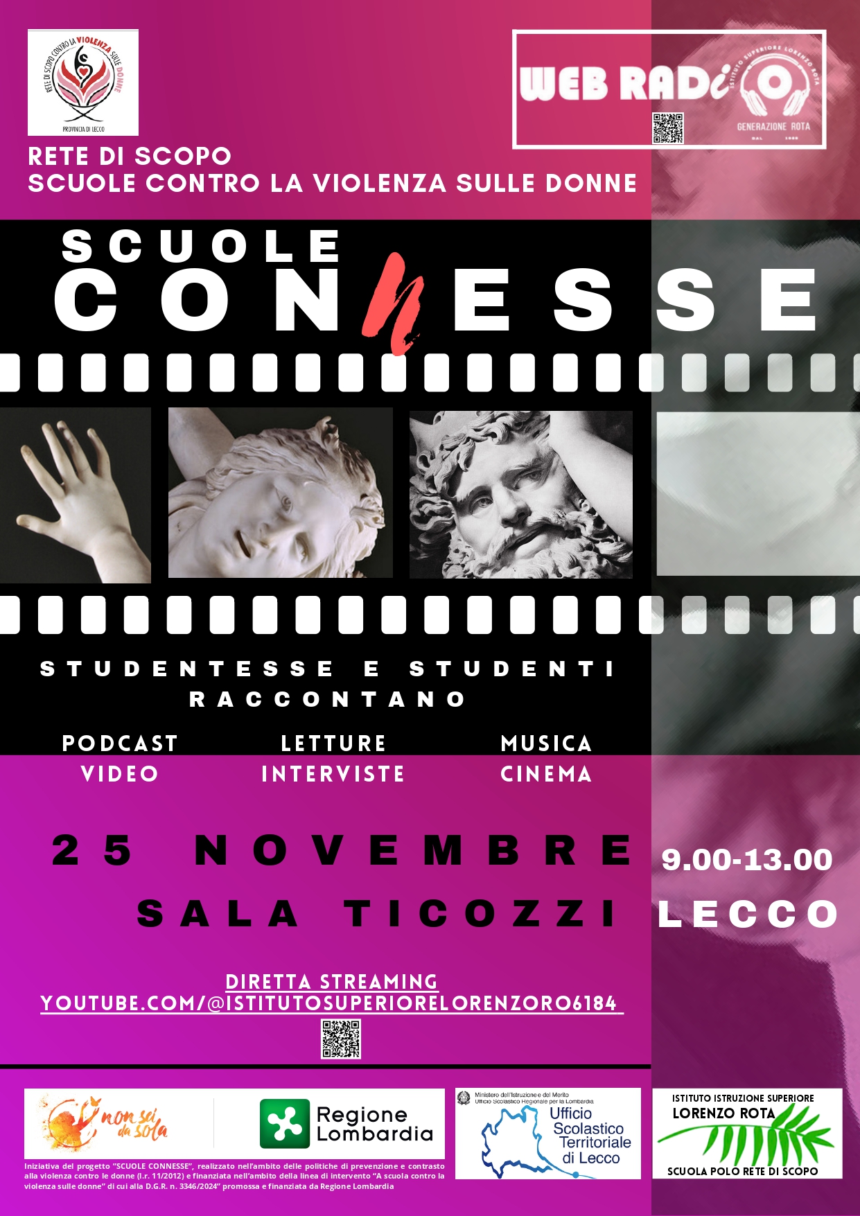 In occasione del 25 novembre, giornata internazionale per l’eliminazione della violenza contro le donne, la Rete di scopo CONnESSE della provincia di Lecco, propone un evento nuovo e sperimentale, dal titolo Scuole Connesse, che unisce, stimola e apre alla condivisione autentica.