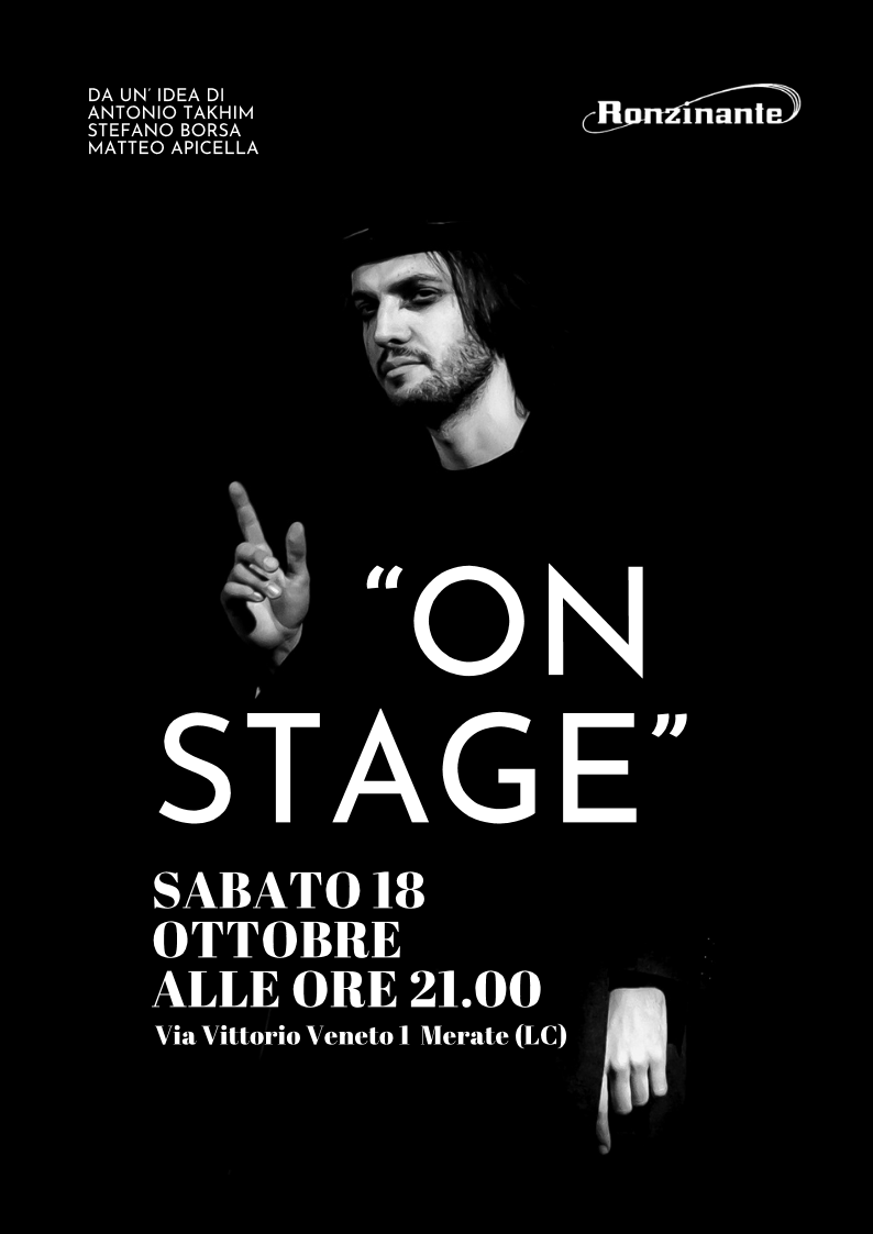 Si parte Sabato 18 Ottobre alle 21.00, dove, presso la sede di Ronzinante in via Vittorio Veneto 1 a Merate, prende il via la seconda edizione di On Stage, l’appuntamento dedicato all’espressione artistica libera e condivisa.