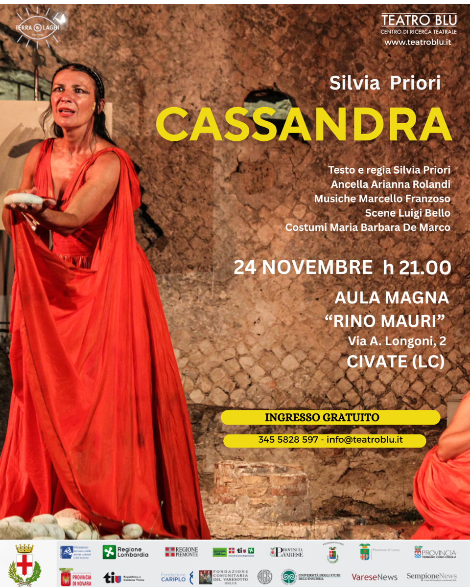 Lunedì 24 Novembre, alle 21.00, l’Aula Magna “Rino Mauri” di Civate ospiterà lo spettacolo Cassandra, un’opera in collaborazione con l’Università degli studi dell’Insubria di Varese, che comprende uno studio su Eschilo, Virginia Woolf e Wisława Szymborska.