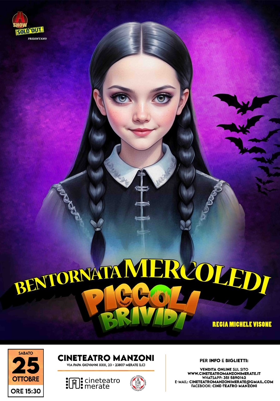 Arriva a Merate uno degli appuntamenti teatrali più attesi della stagione per le famiglie: Bentornata Mercoledì – Piccoli Brividi, un Family Show travolgente, pensato per affascinare bambini, genitori e spettatori di tutte le età.