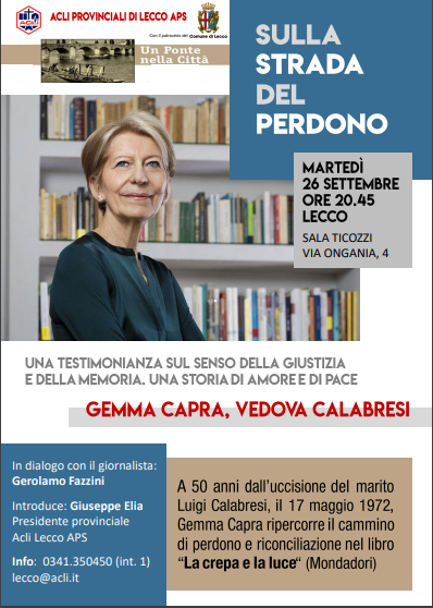 Il cammino della vedova del commissario Calabresi, ucciso cinquant’anni fa. Una testimonianza sul senso della giustizia e della memoria. Una storia di amore e di riconciliazione, raccontata anche nel libro “La crepa e la luce” (Mondadori, 2022).