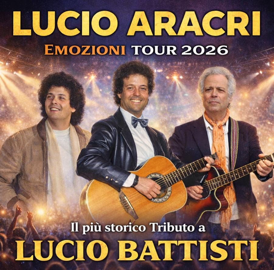 Stesso nome, stesso look, stesse movenze sul palco: uno spettacolo unico e senza precedenti, capace di riportare in scena un altro Lucio in tutti i sensi. Autore e compositore di musica leggera, Lucio Aracri ha scritto quattro brani per Peppino Gagliardi, inseriti nell’album Momenti, oltre a “Come un uragano” per Sabrina Salerno. È inoltre autore di canzoni come Dimmi perché piangi, Ti ho amato tanto e Gatto persiano, dedicate a giovani emergenti della musica italiana.