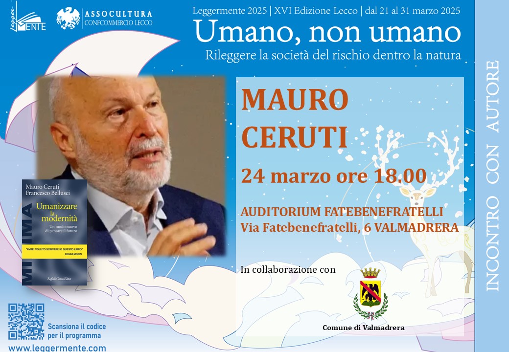 Nell’ambito della ventiseiesima edizione di Leggermente che quest’anno ha per tema “UMANO NON UMANO. Rileggere la società del rischio dentro la natura”, l’amministrazione comunale di Valmadrera presenta l’incontro con Mauro Ceruti.