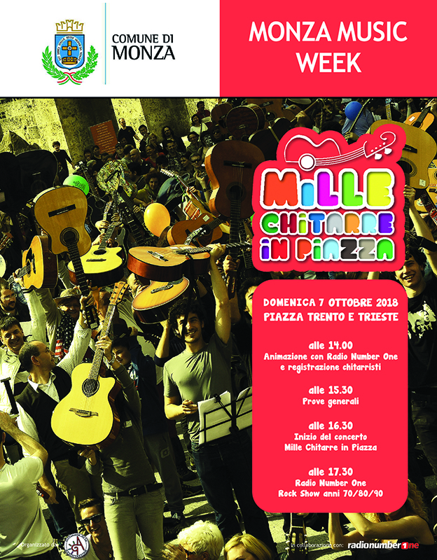 La rassegna si aprirà domenica 7 ottobre in piazza Trento e Trieste con “Mille chitarre in piazza”, un format nazionale di grande successo che prevede un maxi raduno di chitarristi che suoneranno e canteranno insieme brani famosi della tradizione cantautorale italiana. Chiunque potrà partecipare gratuitamente, professionisti e dilettanti, senza limiti di età. Al termine del concerto lo spettacolo musicale continua con “Radio Number One Rock Show anni 70/80/90”.