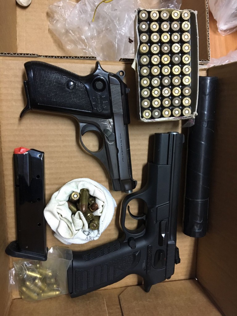 BERGAMO – Il Nucleo Polizia Tributaria della Guardia di Finanza di Bergamo, nel corso di un accesso ai fini fiscali effettuato negli uffici operativi di Verdellino di una società di servizi avente sede legale a Napoli, ha rinvenuto due pistole semiautomatiche con matricola abrasa, un silenziatore artigianale, tre caricatori ed oltre 60 munizioni.