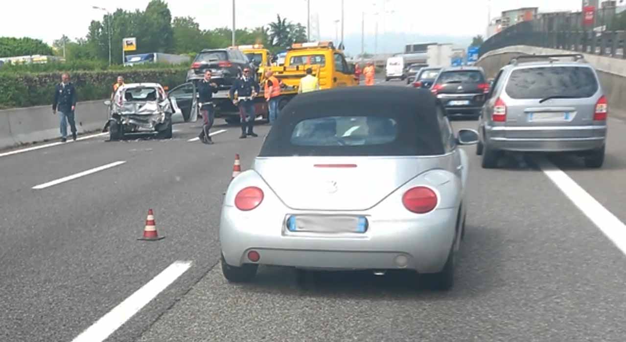 Il sinistro è avvenuto poco dopo le tre e ha coinvolto due autovetture. L’incidente ha inevitabilmente avuto ripercussioni sul traffico con una corsia interdetta a causa delle auto incidentate sulla carreggiata.