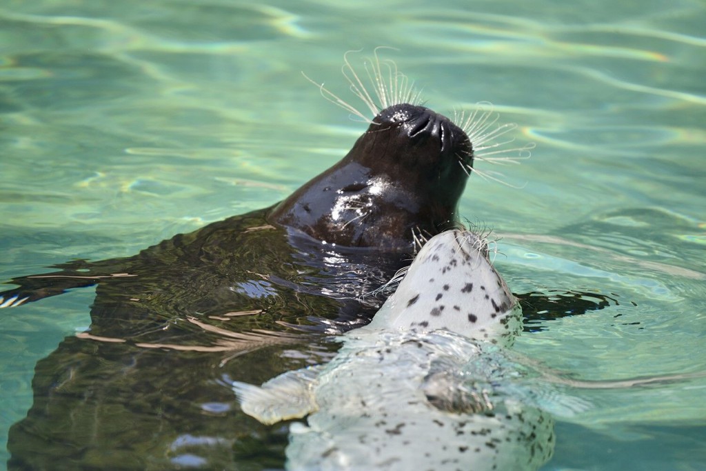 Primo a nascere è stato il maschietto, l’8 giugno, figlio della foca Schizzo, così chiamata perché ha l’abitudine di colpire con le pinne la superficie dell’acqua per richiedere il cibo, schizzando chi le sta intorno. Misurato a una settimana dalla nascita, il piccolo esemplare pesava già 15 kg ed era lungo 81 cm. Tutto (o quasi) merito del latte della mamma di cui si ciba regolarmente.