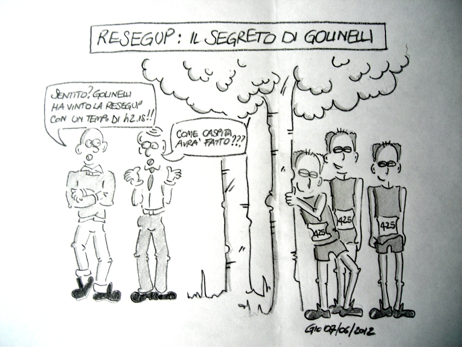 LECCO – La matita di Gio’ svela il segreto di Nicola Golinelli, lo skyrunner di casa, in forza al Ger di Rancio, che ha fissato il nuovo record della Resegup fermando il cronometro sulle 2 ore, 13 minuti e 3 secondi dopo aver macinato la bellezza di 24 chilometri per 1800 metri di dislivello positivo (vedi articolo). Un successo che ha consacrato Golinelli Re Resegone dopo essere già stato incoronato Re della Grignetta. I tempi impressionanti dell’atleta lecchese, da piazza Cermenati alla cima del Resegone ha impiegato solamente un’ora e 15 minuti, hanno lasciato meravigliati numerosi sportivi e appassionati di corsa in montagna. La domanda che in molti si sono posti è stata, ma come farà? La matita di Gio’ ha sveltato il segreto…