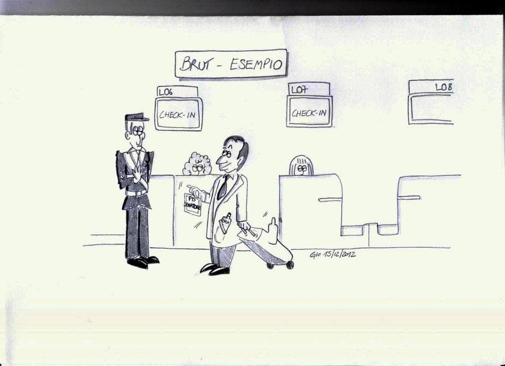 La matita di Giò il vignettista questa settimana colpisce il politico “beccato” all’aeroporto per la vicenda del tesserino e della bottiglia. Ecco la disegnata del giovedì con il “Brut-esempio”.