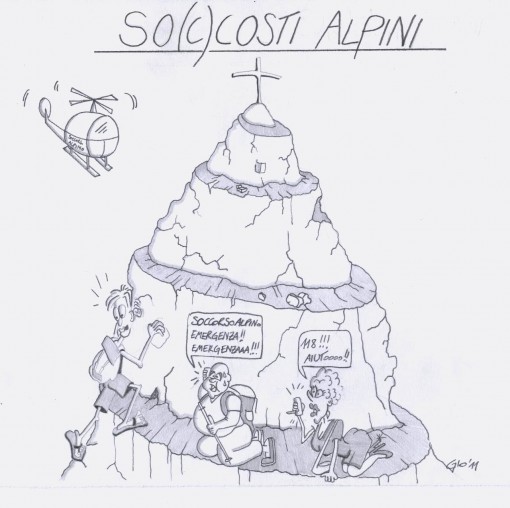 Gio’ questa settimana nella sua vignetta punta la matita verso la spavalderia di tutti coloro che affrontano la montagna senza una conoscenza e una preparazione adeguate… tanto poi ci sono 118 e Soccorso Alpino.