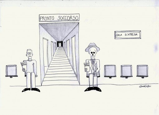 Nemmeno in un giorno di festa si ferma la matita di Giò che questo giovedì va “ridipingere” la disavventura del giovane lecchese rimasto ad aspettare al Pronto Soccorso di Lecco per ben  14 ore (vedi articolo).