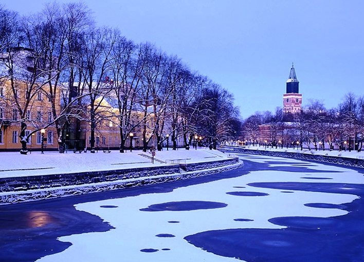 In conclusione, l’unico lato veramente negativo, per me, è il clima. Ormai sono abituata a indossare il giaccone invernale da novembre a fine marzo; al ghiaccio, alla neve; a frasi tipicamente baltiche del tipo: “Hei, è il primo marzo, è primavera!”, quando tutto intorno a te sembra un freezer–e tu ti senti un’aringa baltica surgelata. Per alcuni di noi italiani questo sarebbe già abbastanza, ma il vero problema, secondo me, è l’oscurità (6 ore di luce e sole bassissimo sull’orizzonte nel mese di dicembre), ma non disperate. Ci sono lampade, vitamine, mille rimedi per combattere la diffusa “sindrome affettiva stagionale” (S.A.D.), di cui soffrono anche i locali. L’inverno finlandese ti tempra–se sopravvivi. La sauna è un toccasana e funziona ancora meglio se seguita da un glögi caldo (la tipica bevanda natalizia a base di succo di ribes, cannella, zenzero) in compagnia dei propri semiseri amici finlandesi. E poi l’estate sul Baltico è spettacolare: sole notte e dì, caldo (ricordo settimane a 28°!), i turkuensi – me compresa – che escono dalle caverne, bagni al mare (ebbene sì). Insomma: per me ne vale tutta la pena!”.