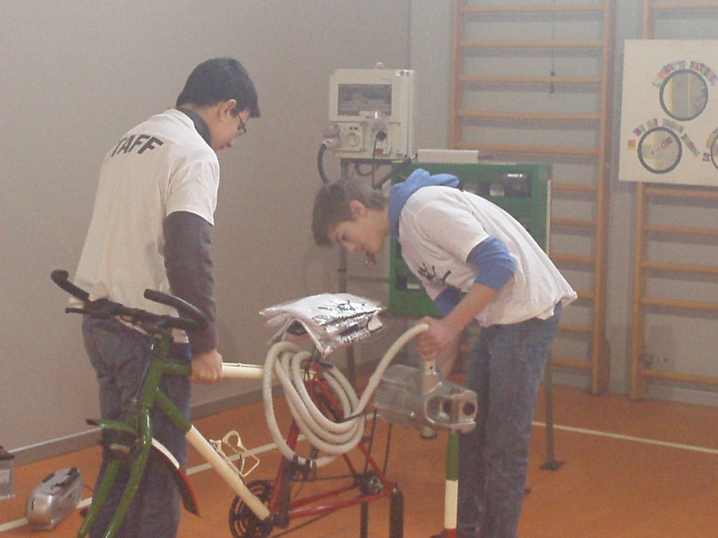 La scuola statale secondaria di primo grado di Calco nell’ambito della settimana dello sviluppo eco sostenibile hanno invitato gli studenti “Zebra” dell’istituto Fiocchi, che avevano svolto un lavoro su inquinamento e mezzi di trasporti (tra i quali la bicicletta) insieme alla Cooperativa Sociale ECO86. All’inizitiva brianzola quindi i ragazzi hanno sviluppato un progetto che l’istituto porta avanti da tempo: una bici, opportunamente modificata, tramutata in un vero e proprio generatore di corrente.
