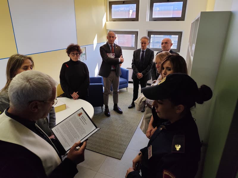 La mattinata si è conclusa con il taglio del nastro inaugurale e la benedizione della stanza protetta da parte del parroco della Polizia di Stato Don Andrea Lotterio.