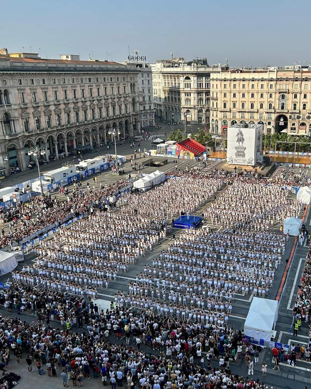 MILANO – Domenica 10 settembre in piazza Duomo a Milano la danza ha trovato il modo per rendersi pubblica e popolare, affascinate e coinvolgente. Ballo in bianco di On Dance ha permesso a 30 ragazze di Arte Danza Lecco diretta da Cristina Romano con Daniela Pensotti e 10 ragazze di Asc Ballabio ’89 coordinate da Barbara Fomasi di prender parte alla grande esibizione.