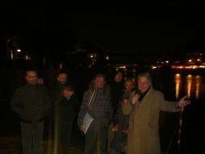 Sulle note della cornamusa suonata da Raniero Fumagalli, musicista lecchese attualmente in forza al Biglietto per l’Inferno.folk, ha preso il via l’iniziativa di accensione dell’albero: quest’anno è stata selezionata la betulla situata al centro del giardino dell’isola, visibile sia dalla sponda lecchese del lago sia da quella pescatese. “Per il terzo anno consecutivo – ha spiegato il portavoce di ApL, Corrado Valsecchi – Appello per Lecco accende l’albero di Natale sull’Isola Viscontea. Questa iniziativa – ha ribadito Valsecchi – è una bella consuetudine, un momento di festa per concludere al meglio un’annata cha ha visto ben 8500 visitatori sull’isola”. Il portavoce di Appello per Lecco, dopo aver ricordato i numerosi volontari che contribuiscono a mantenere in funzione l’Isola e le sue attività, ha poi ringraziato la proprietà dell’isola, rappresentata dal dott. Guerrera, “per aver sempre creduto in Appello per Lecco”. A dimostrazione di tutto ciò, Corrado Valsecchi ha consegnato a Guerrera una busta-regalo contenente i progetti esecutivi per la ristrutturazione dell’edificio principale dell’Isola Viscontea e della vicina torretta: “la proprietà – ha spiegato subito Valsecchi – deve soltanto firmare i documenti, poi ApL depositerà il tutto: così facendo potremo iniziare a studiare le possibilità di costruzione di un ponte per l’Isola”.