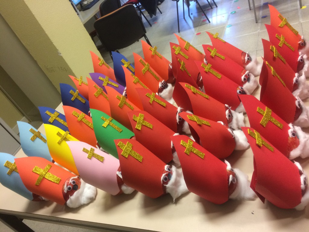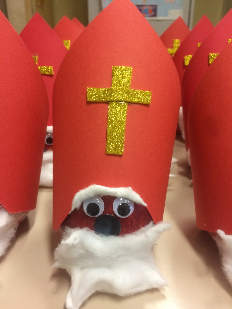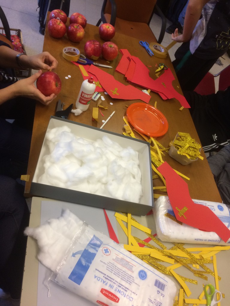 Le mele, ora adornate con cappellino e barba, confezionate e riposte nelle cassettiere realizzate dal comitato dei genitori, saranno donate in questi giorni a tutti gli studenti.