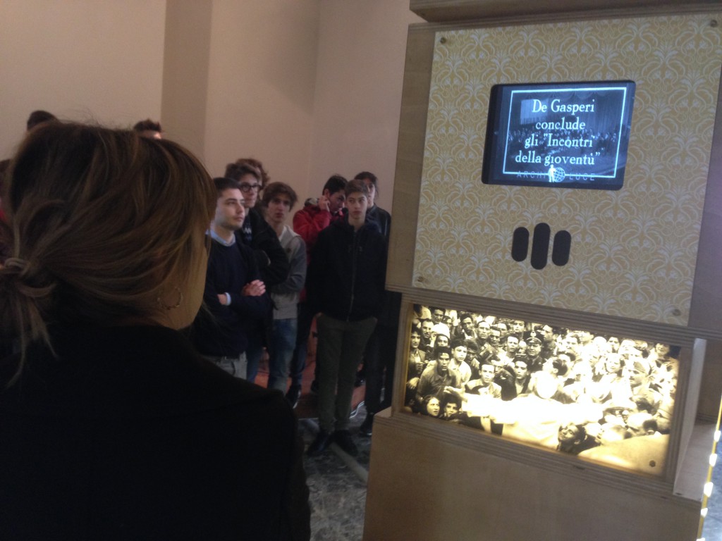 “Un grazie speciale va sicuramene alla Fondazione De Gasperi e alla Fondazione Costruiamo il Futuro che ci hanno permesso di avere qui oggi questa mostra” ha detto Meroni: “la testimonianza di De Gasperi è un seme che va sviluppato e continuato. Vedere la mostra, può realmente costituire per i nostri studenti un’occasione di crescita e di provocazione a spendersi in modo vero e grande nella propria vita, per il bene della società tutta”. “Non vogliamo che De Gasperi resti solo il nome di una via nelle città” ha spiegato Procopio: “la politica è una cosa buona; non è fatta di populismo. De Gasperi era spinto da un’etica, non da un appagamento di potere.  Ci ha tramandato un metodo democratico, che verte sulla forza del dialogo con chi la pensa diversamente, non sulle urla come oggi spesso purtroppo vediamo accadere tra politici”.