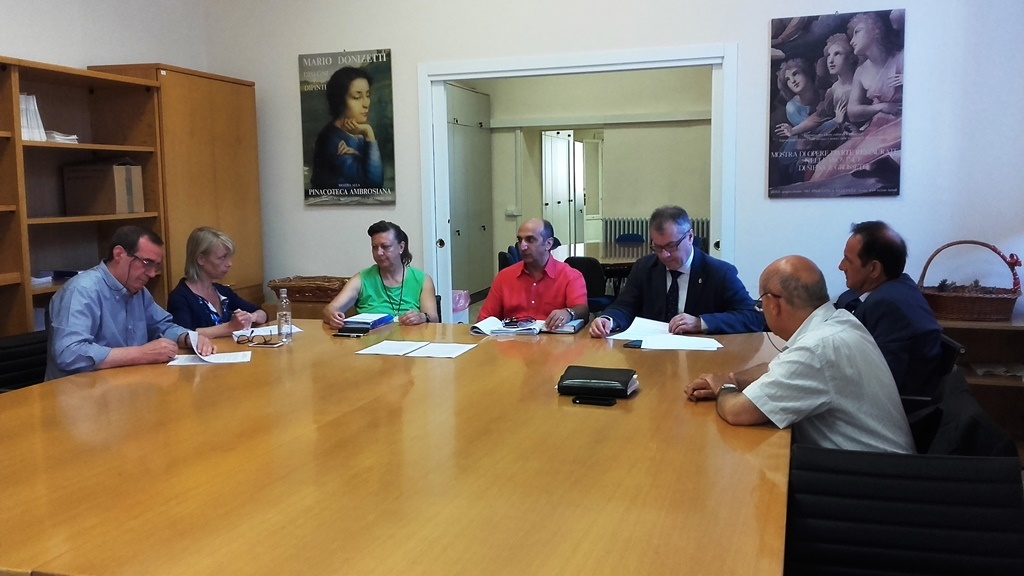 LECCO – Sottoscritto venerdì mattina in Comune il “Piano per il diritto allo studio e la qualità dell’offerta formativa” tra il Comune di Lecco e i dirigenti scolastici dei 4 Istituti Comprensivi statali cittadini, Claudio Lafranconi, Angelo Falcone, Raffaella Maria Crimella e Giampiero Grasso.
