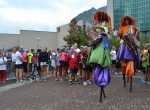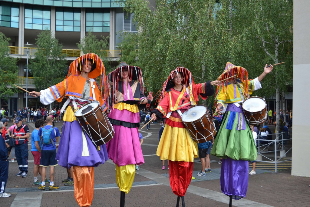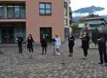 In attesa della partenza fissata per le 9, quattro bravissimi trampolieri hanno incantato e ricevuto gli applausi del pubblico presente.