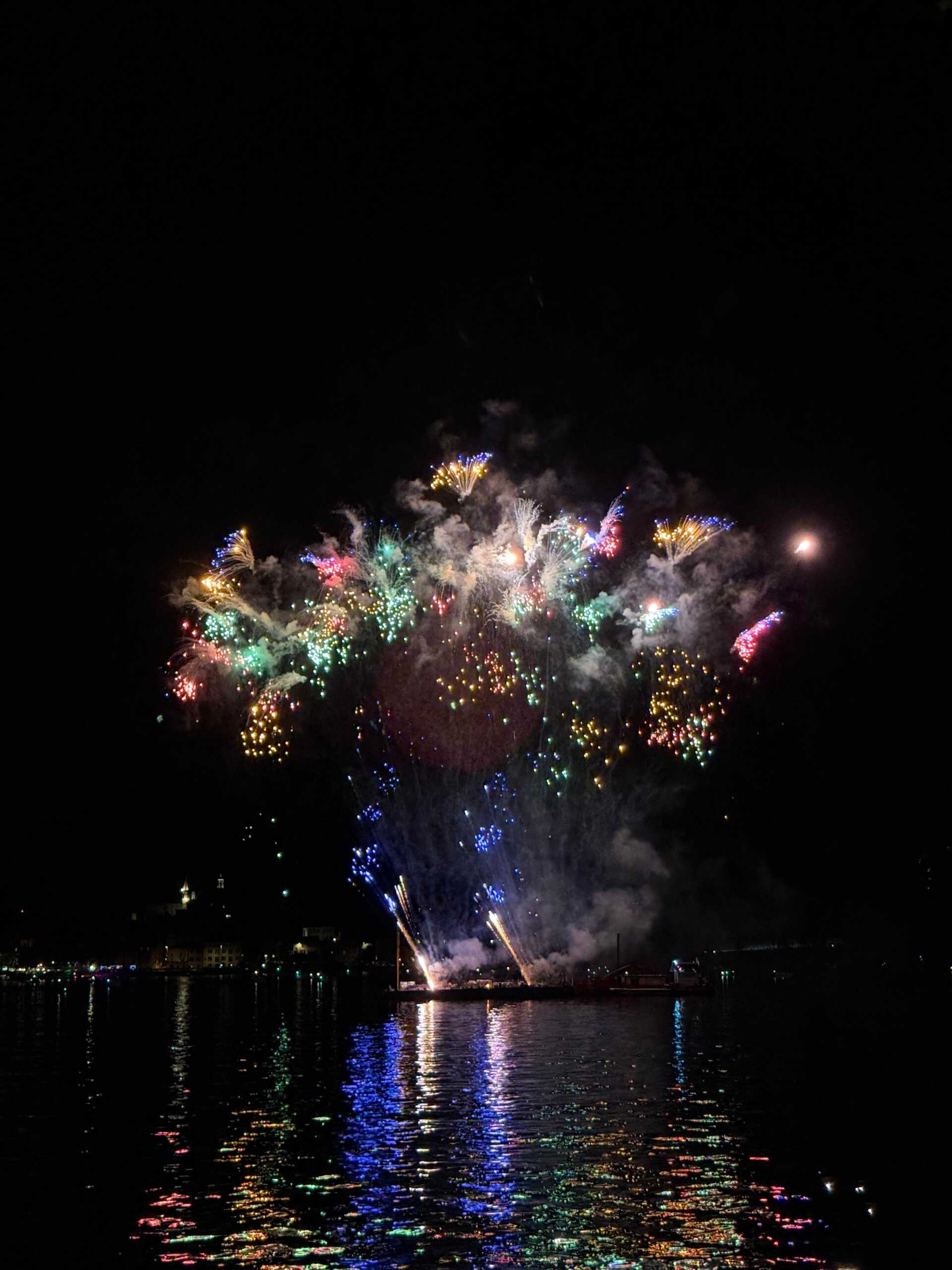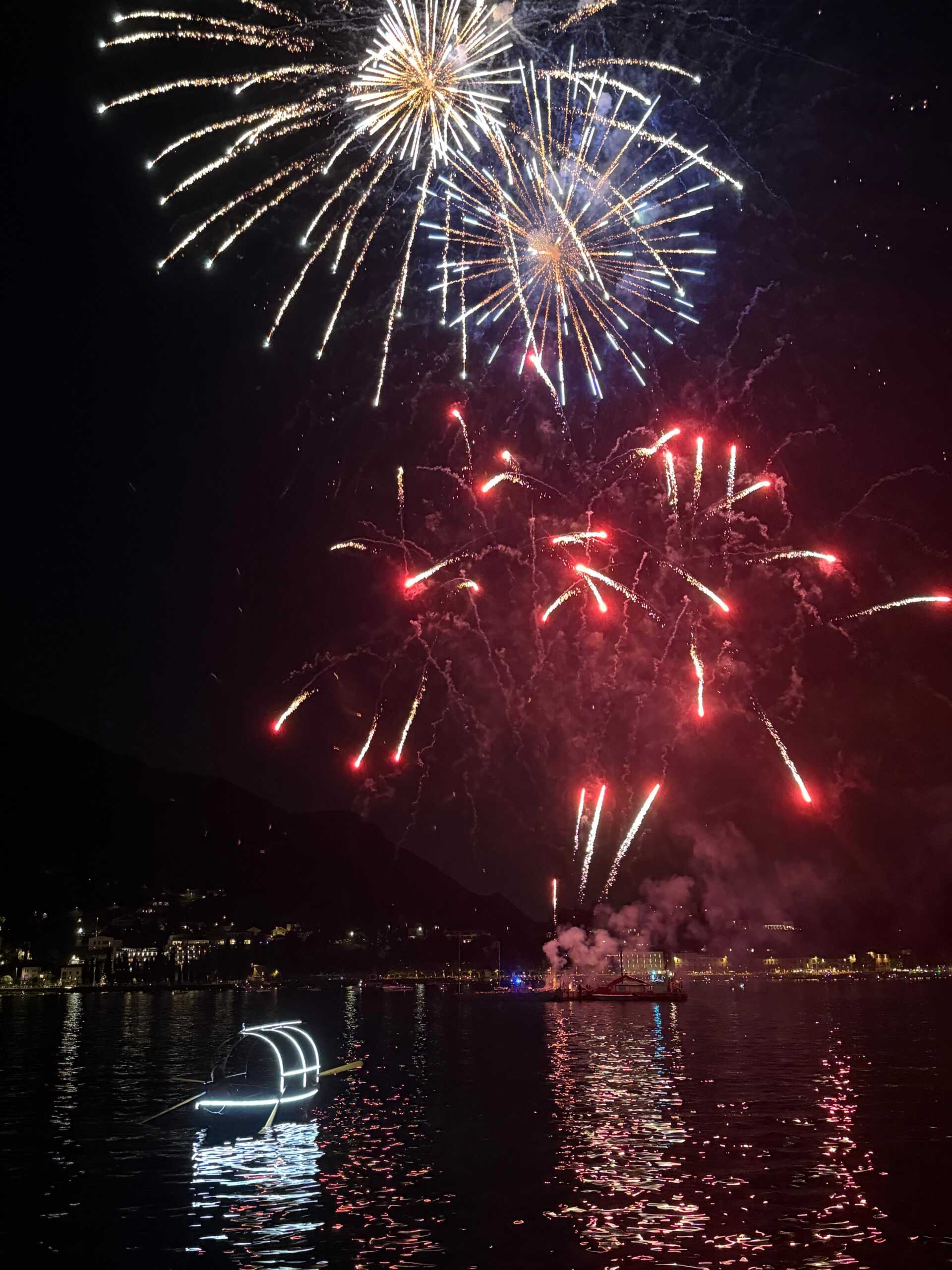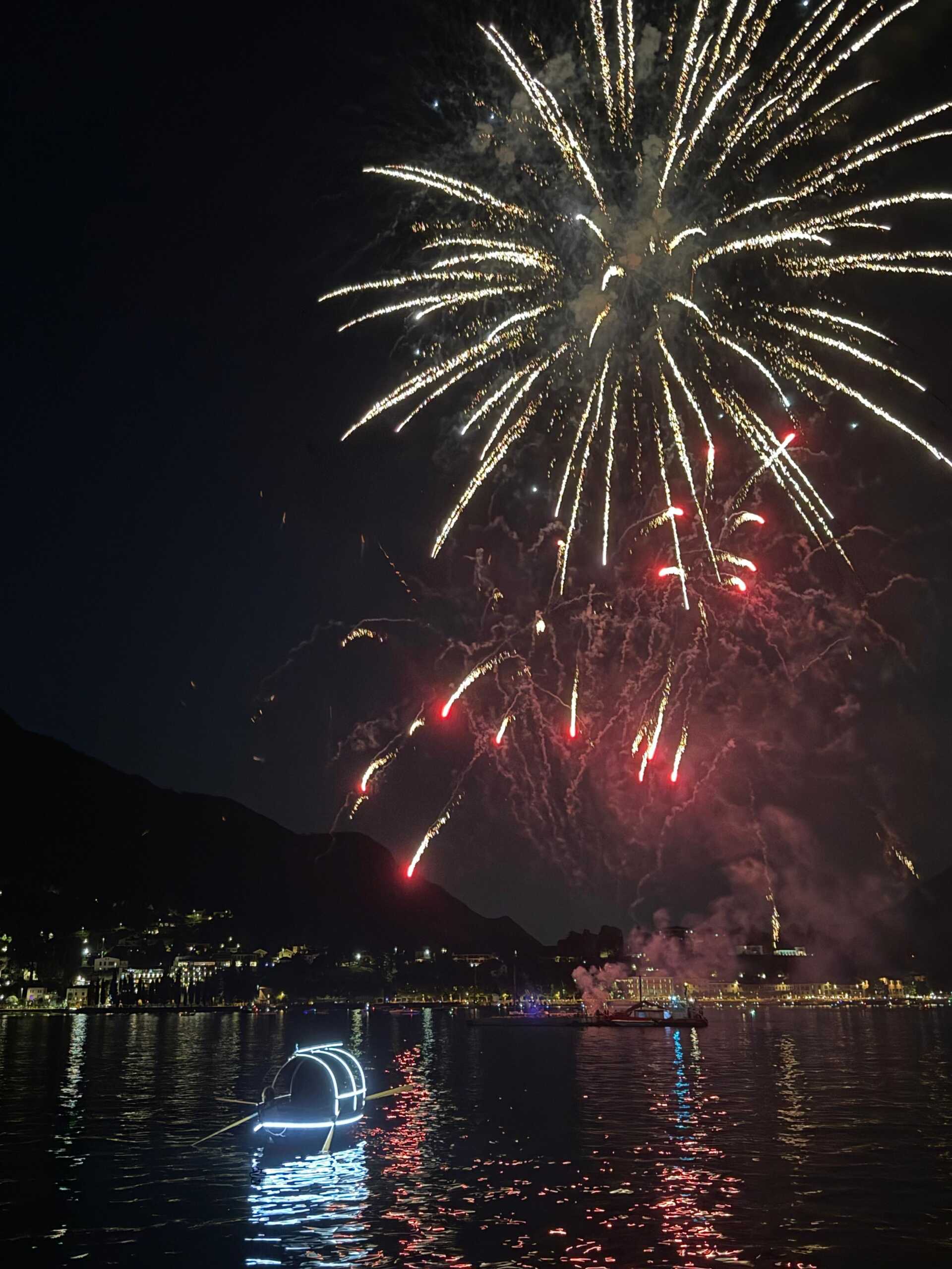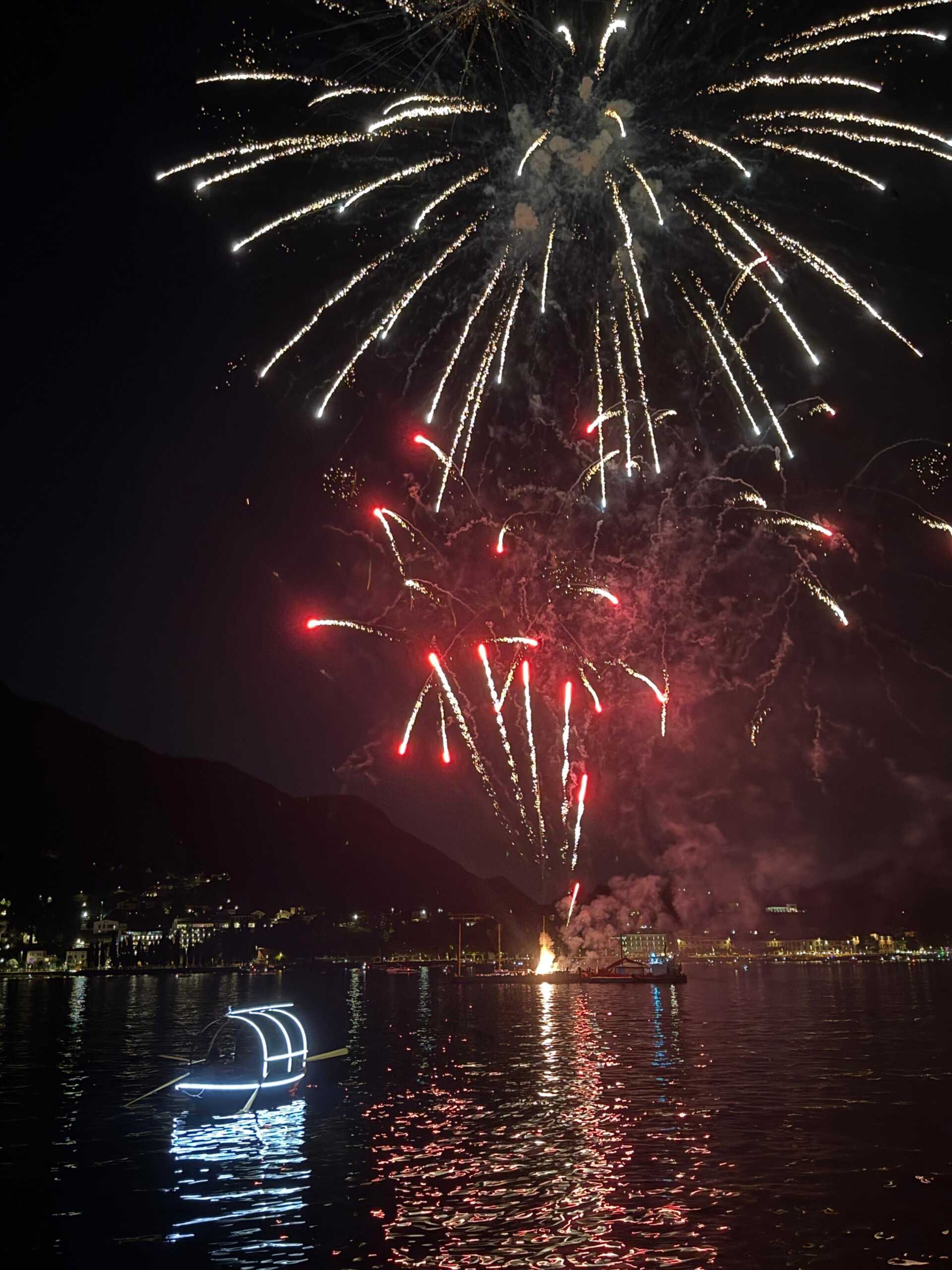 Come da tradizione, poco dopo le 22.30, il cielo si è acceso di luci e colori. Lo spettacolo pirotecnico sul lago, atteso da tutti, ha regalato venti minuti di stupore, tra riflessi sull’acqua e applausi spontanei.
