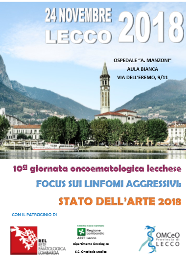 LECCO – Il 24 novembre, presso l’Aula Bianca dell’Ospedale Manzoni di Lecco, si svolgerà con il patrocinio della Rete Ematologica Lombarda e di Omceo Lecco la “10° giornata oncoematologica lecchese”, con al centro il convegno intitolato “Focus sui linfomi aggressivi: stato dell’arte 2018”. L’evento prevede la partecipazione della Dott.ssa Enrica Morra, coordinatrice scientifica della Rete Ematologica Lombarda e di altri esperti nazionali in materia.
