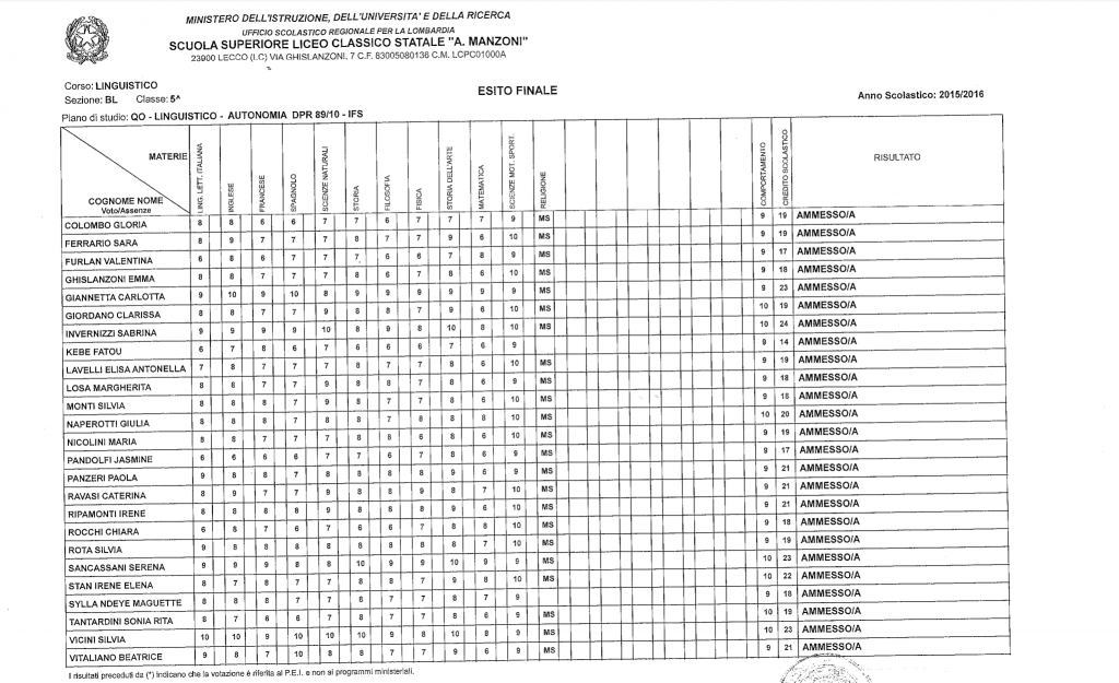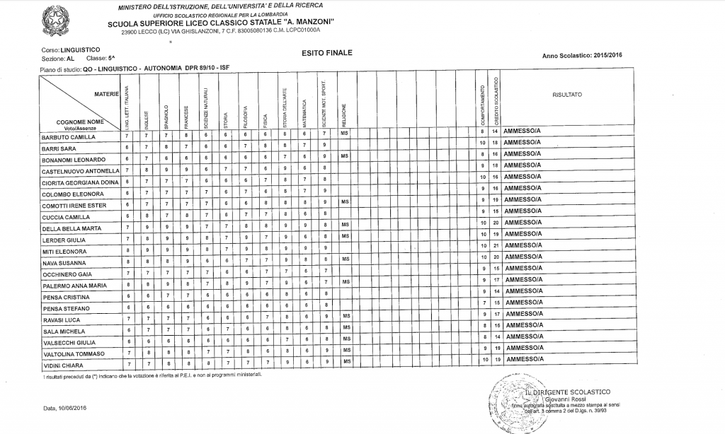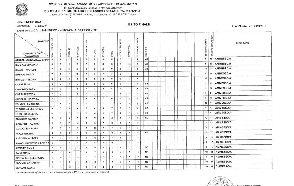 LECCO – Proseguono le pubblicazioni dei voti nelle scuole superiori lecchesi: di seguito i voti degli studenti ammessi all’Esame di Stato 2016 del Liceo Manzoni e dell’Istituto Fiocchi.