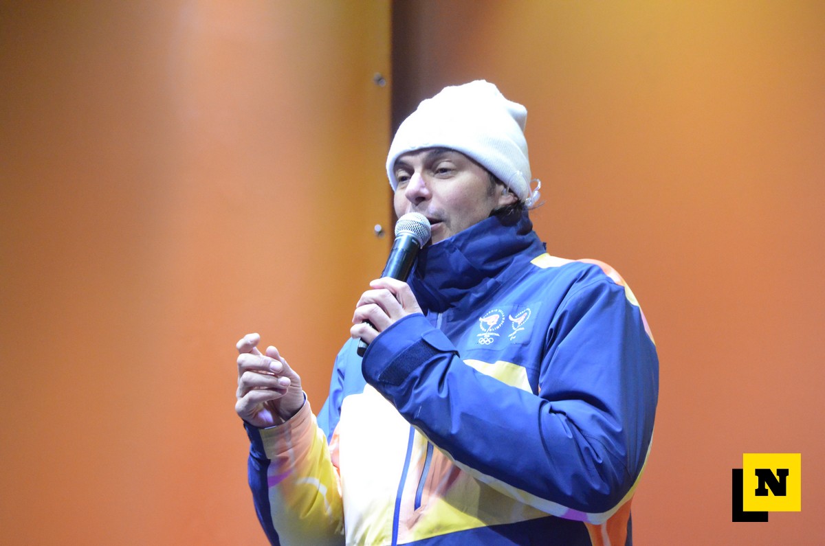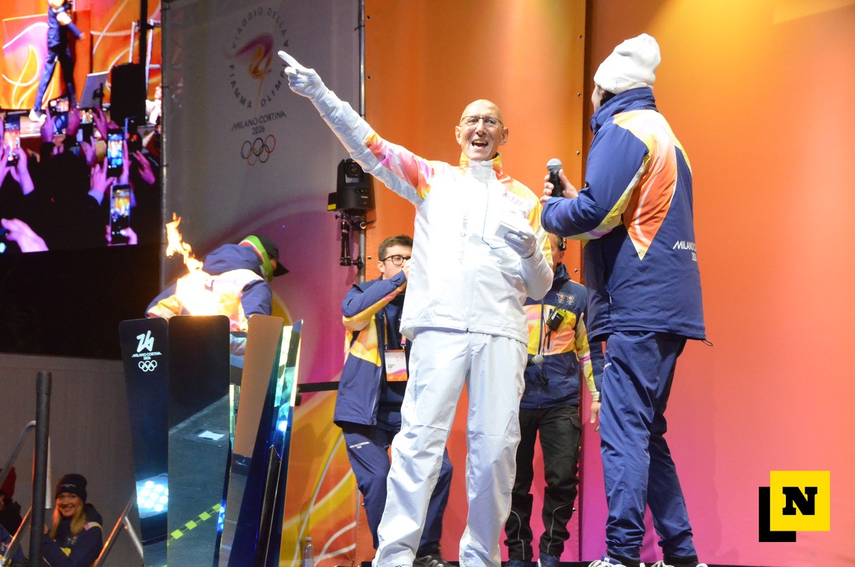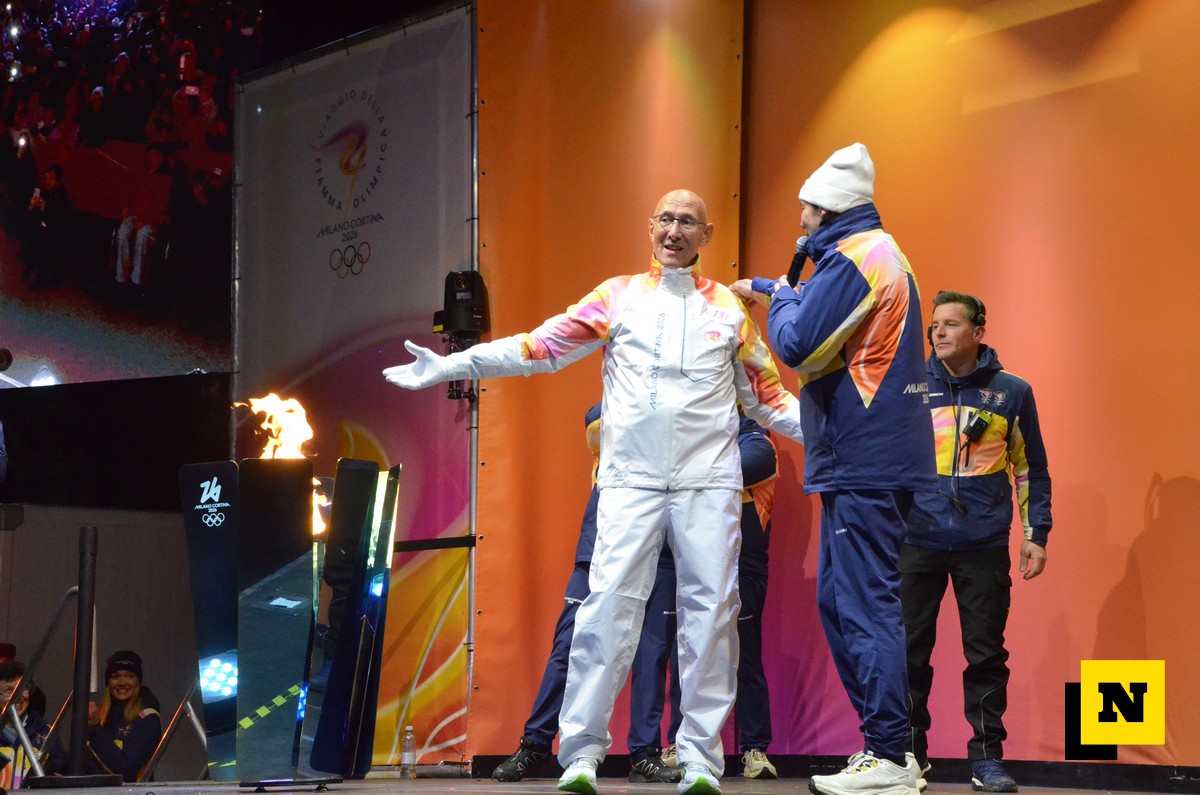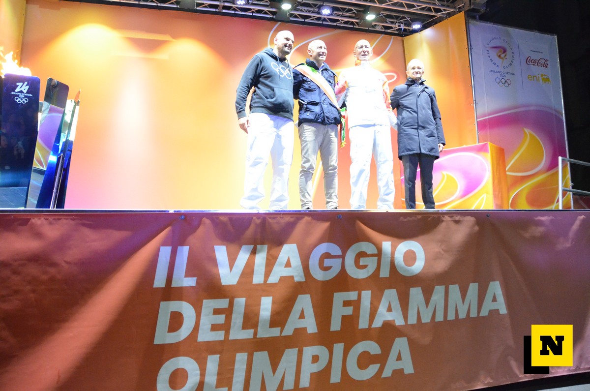 Sul palco di piazza Garibaldi, il dottor Piero Poli ha acceso il braciere olimpico