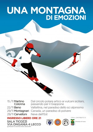 Per concludere il 29 novembre doppio appuntamento con i “locali” scialpinisti del CAI Lecco. Nella stessa serata spazio ai “Montagnari” che racconteranno attraverso immagini e filmati il loro recente viaggio in Canada, il paradiso della polvere. A seguire i “Cervelloni”, storico gruppo scialpinistico lecchese, che presenterà la “Neve dell’Est”. Lo scialpinismo d’avventura ritorna alle origini e lo fa sui pendii remoti della Bulgaria e Romania.