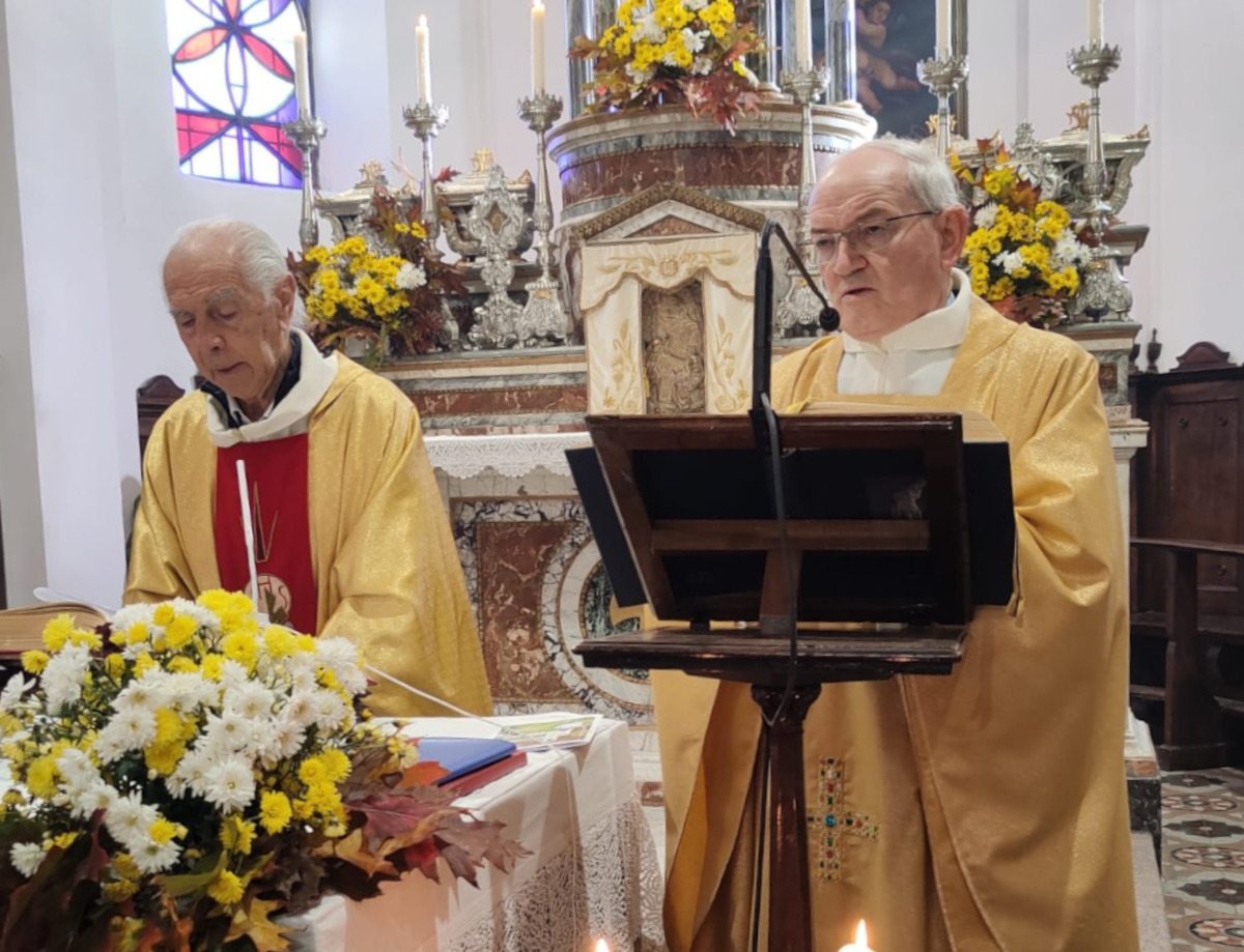 Dopo la Messa, i festeggiamenti sono proseguiti nella sala del municipio con il tradizionale taglio della torta e la consegna di un regalo simbolico. È stato un momento di grande affetto e gratitudine, in cui parrocchiani, amici di sempre, ex alunni ed ex chierichetti hanno rinnovato il loro grazie più sincero a don Agostino, augurandogli anche buon compleanno per i suoi imminenti 85 anni, che festeggerà ufficialmente domani, 13 novembre.